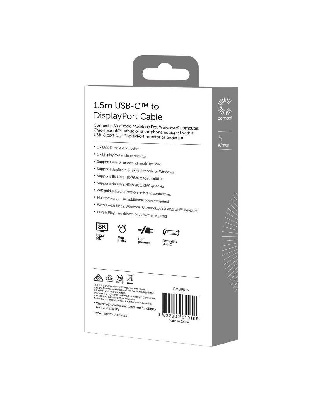 Sold by OfficeworksComsol USB-C to DisplayPort 8K Cable 1.5m