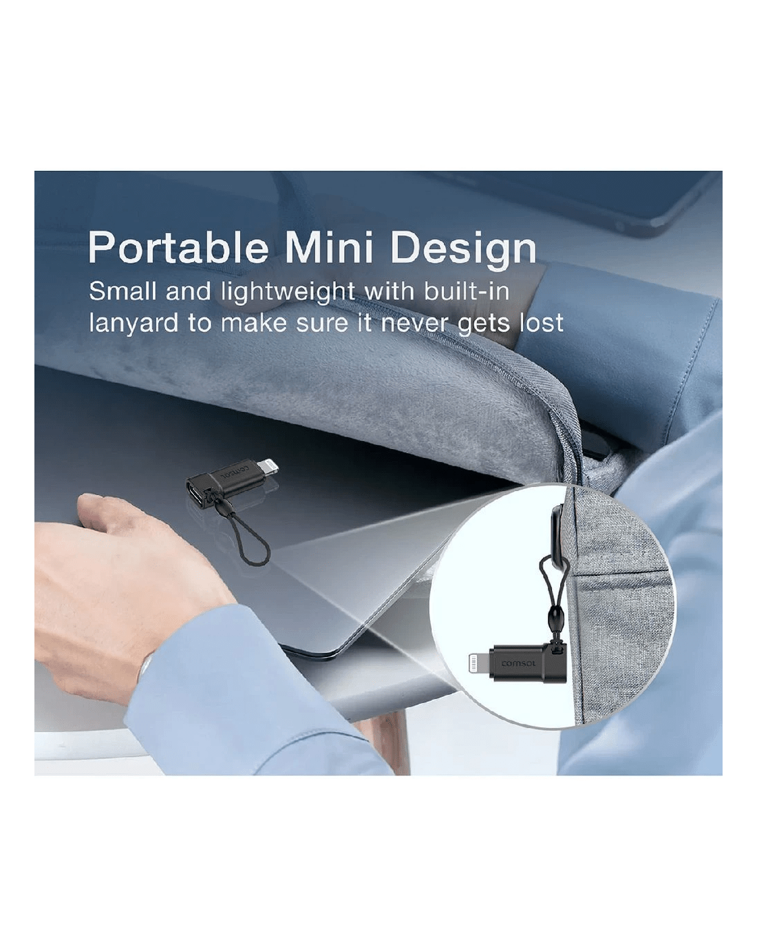 Charge your older style Lightning Apple devices with this Comsol USB-C to Lightning MFi Adapter. Featuring a convenient anti-lost keychain design, it's perfect for keeping on your person, allowing you to stay charged up all day long. This adapter is certified by Apple under the MFi licensing program to ensure it meets Apple's strict performance standards.