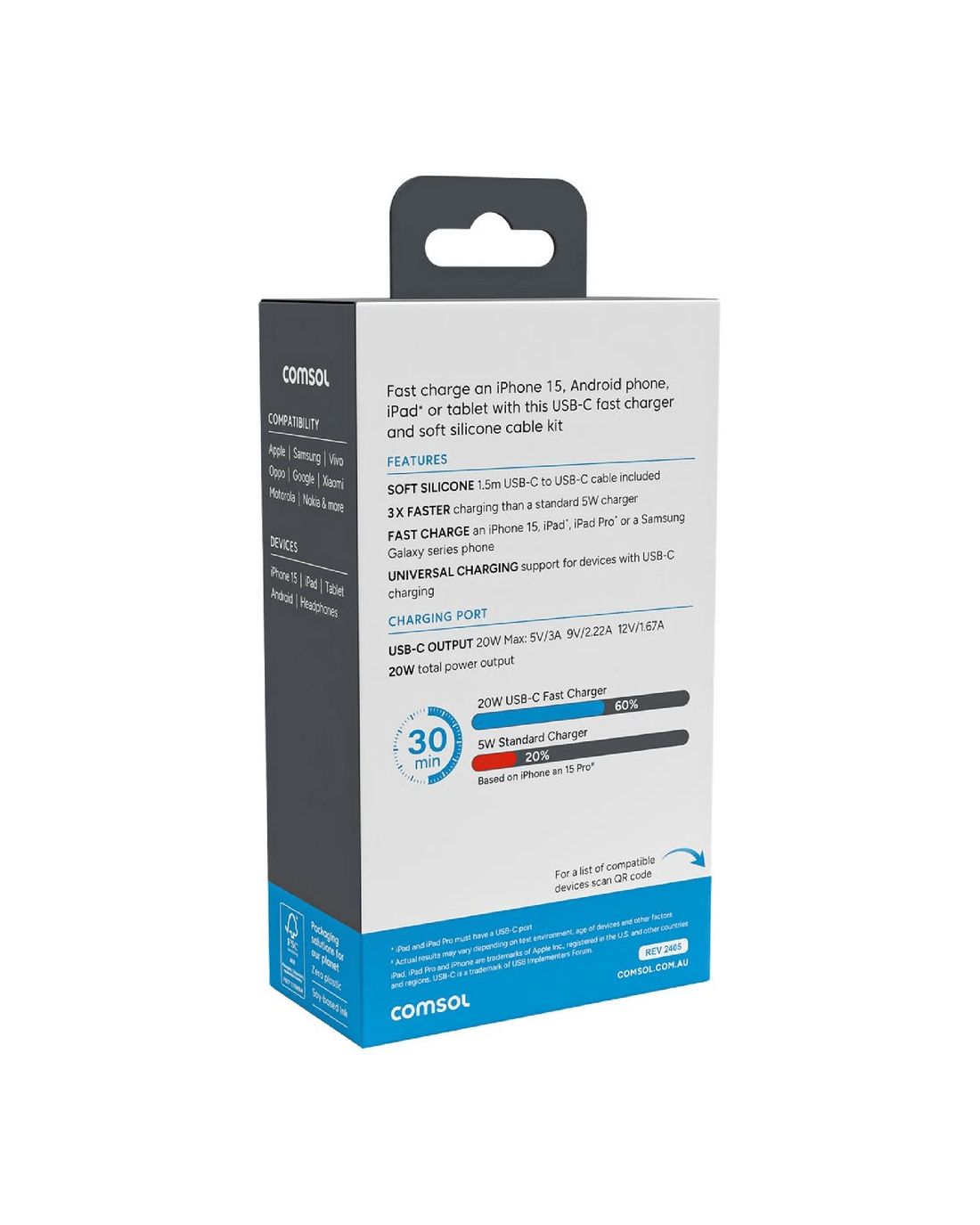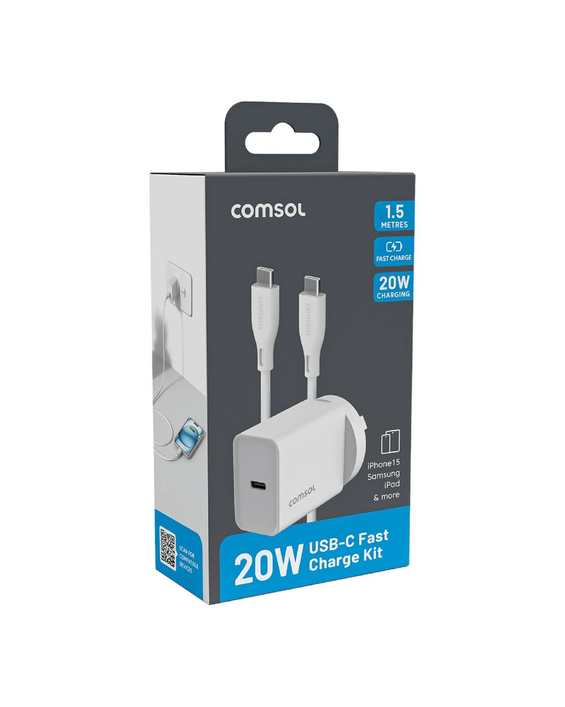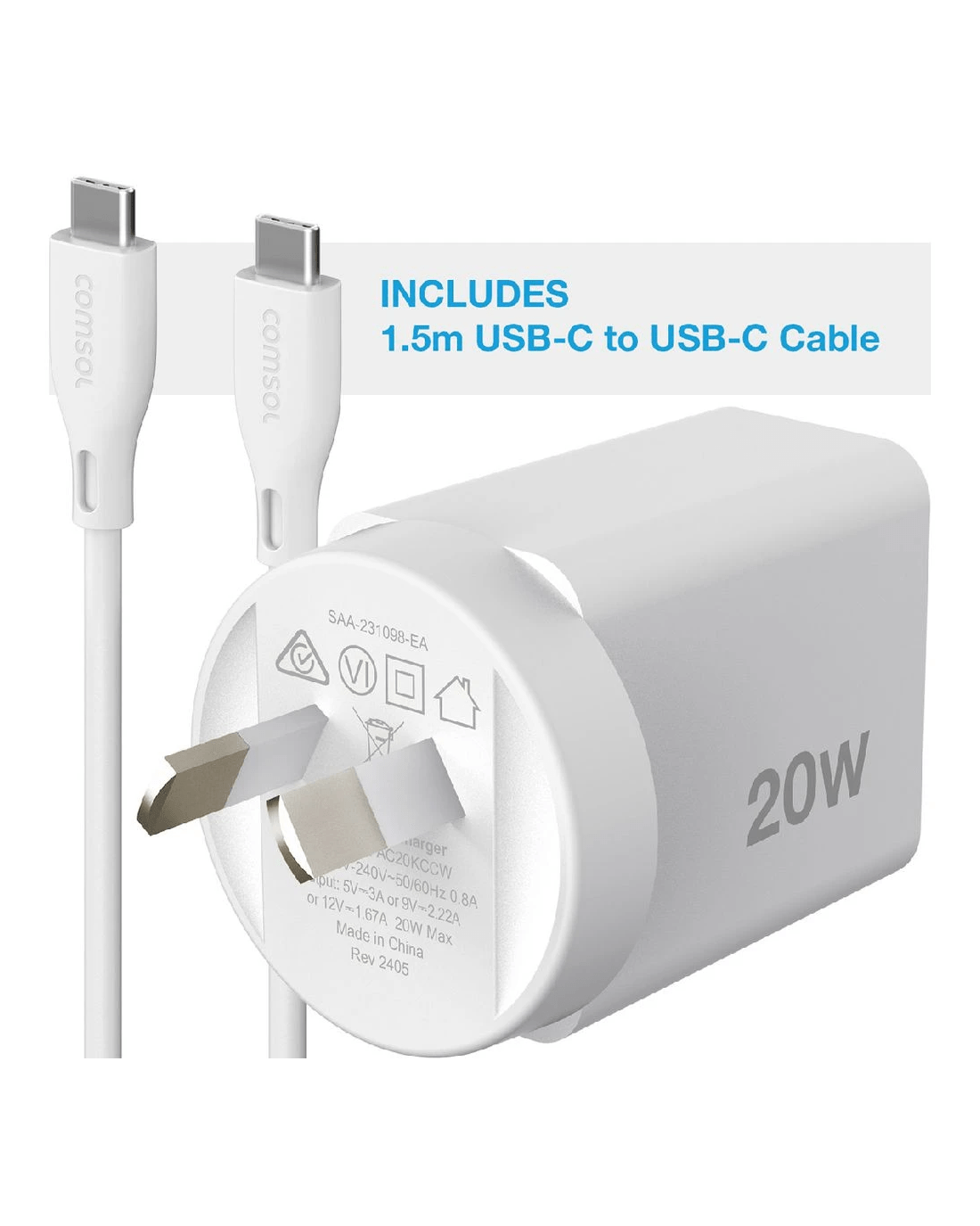Sold by OfficeworksComsol USB-C Wall Charger 20W with 1.5m Cable White
