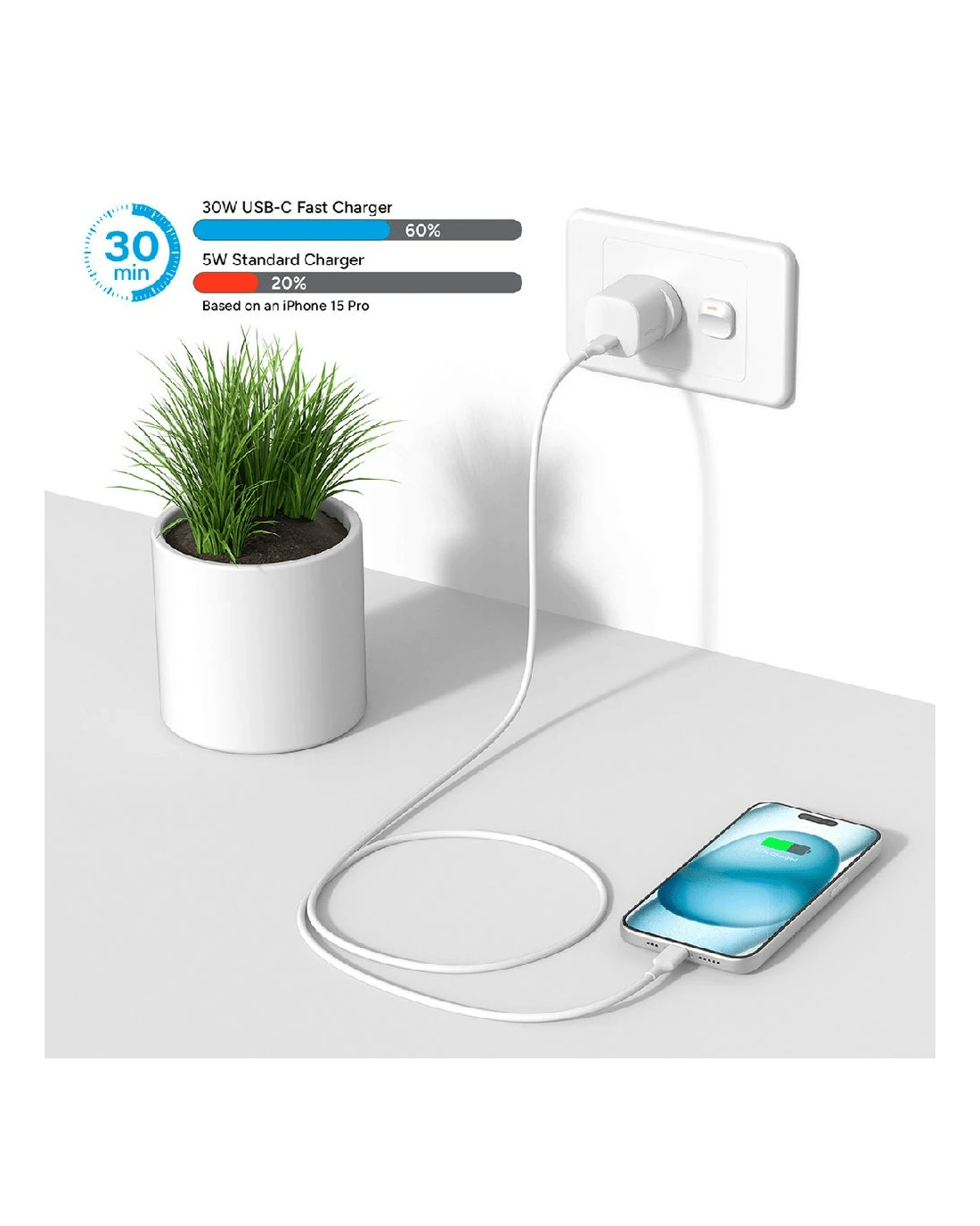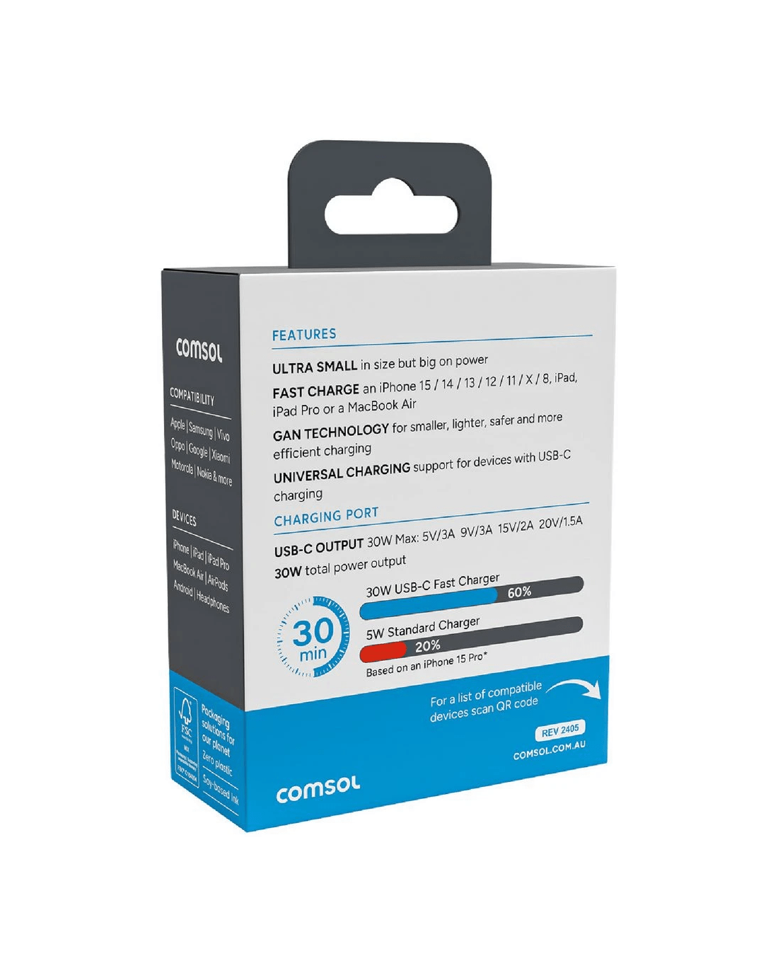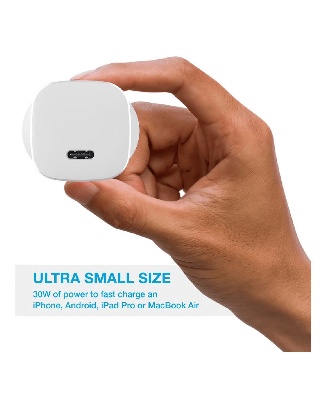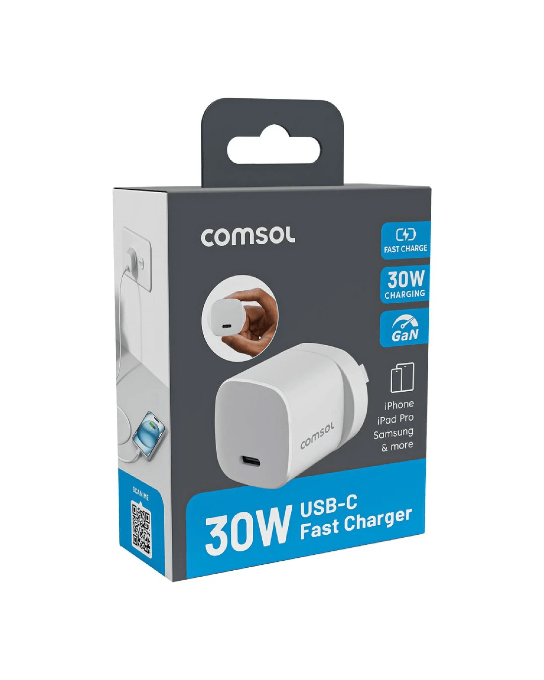 This Comsol USB-C wall charger is great for keeping your devices charged. It has a female USB-C port you can plug a cable of your choice into. Plus, it can provide up to 30W of power.