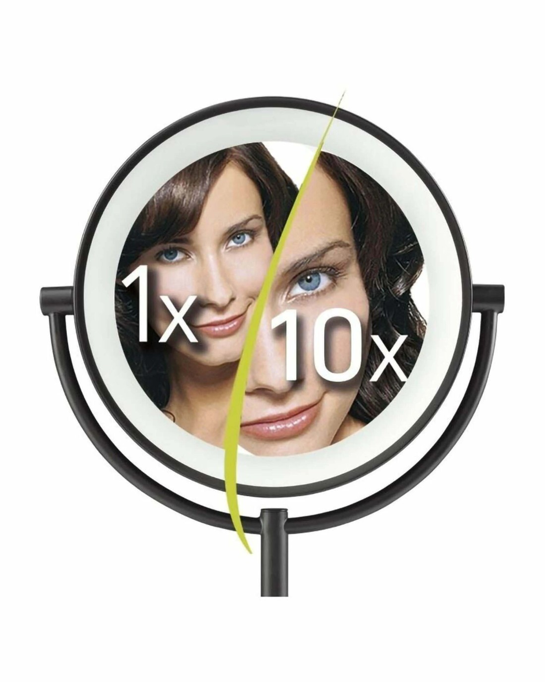 The Conair Halo Cordless Mirror is a versatile and stylish addition to your grooming routine. This double-sided LED rechargeable mirror offers 1x and 10x magnification, perfect for detailed makeup application or close-up grooming. The mirror rotates 360 degrees, providing flexibility and ease of use. Its sleek black matt finish adds a touch of elegance to any vanity. Enjoy the convenience of cordless recharge with up to 180 minutes of runtime, or use it corded for continuous power. With three brightness settings, you can customise the lighting to suit your needs. The Conair Halo Cordless Mirror combines functionality with modern design, making it an essential tool for your daily routine.
