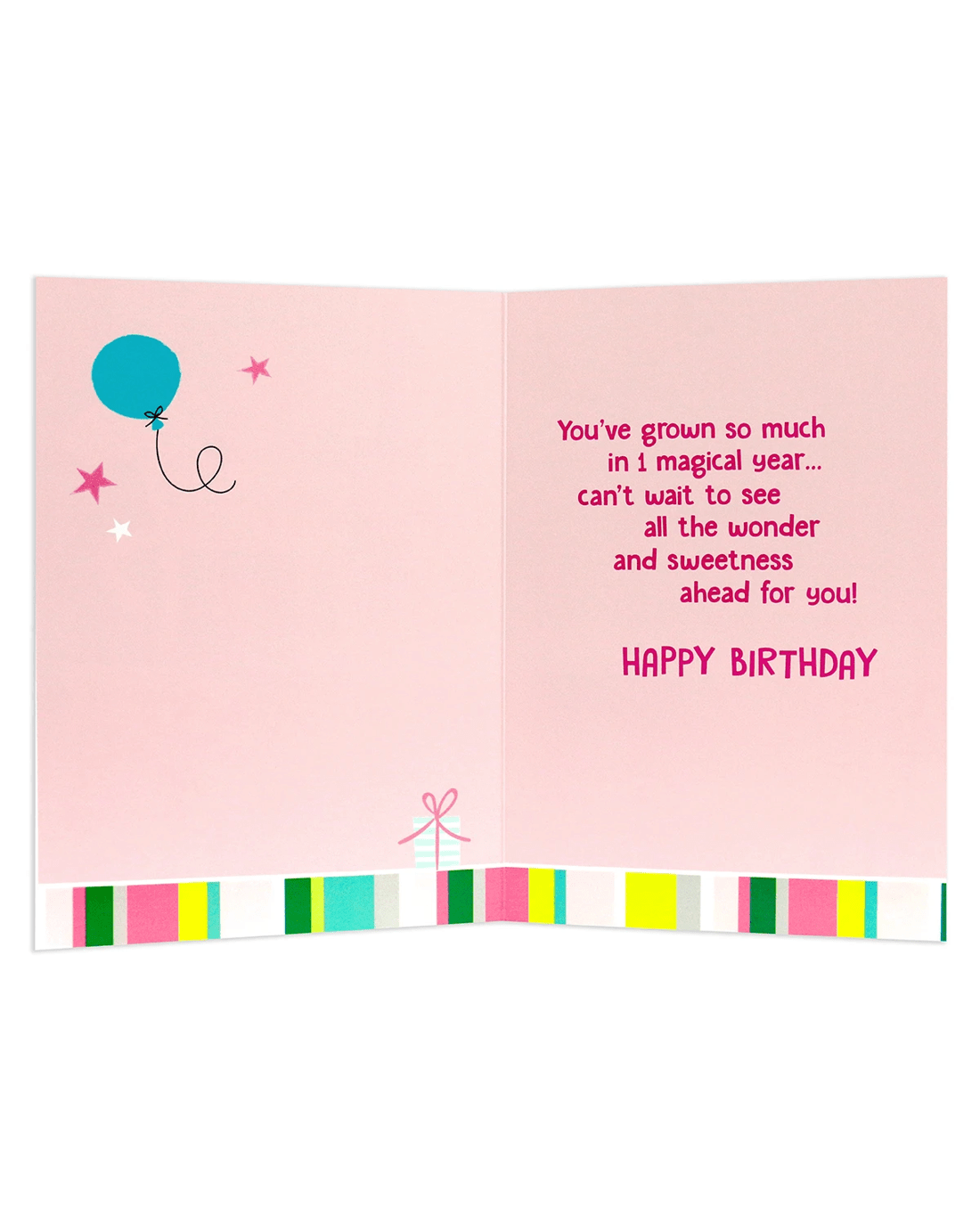 • Inside message reads: 'You've grown so much in 1 magical year… can't wait to see all the wonder and sweetness ahead for you! Happy Birthday'