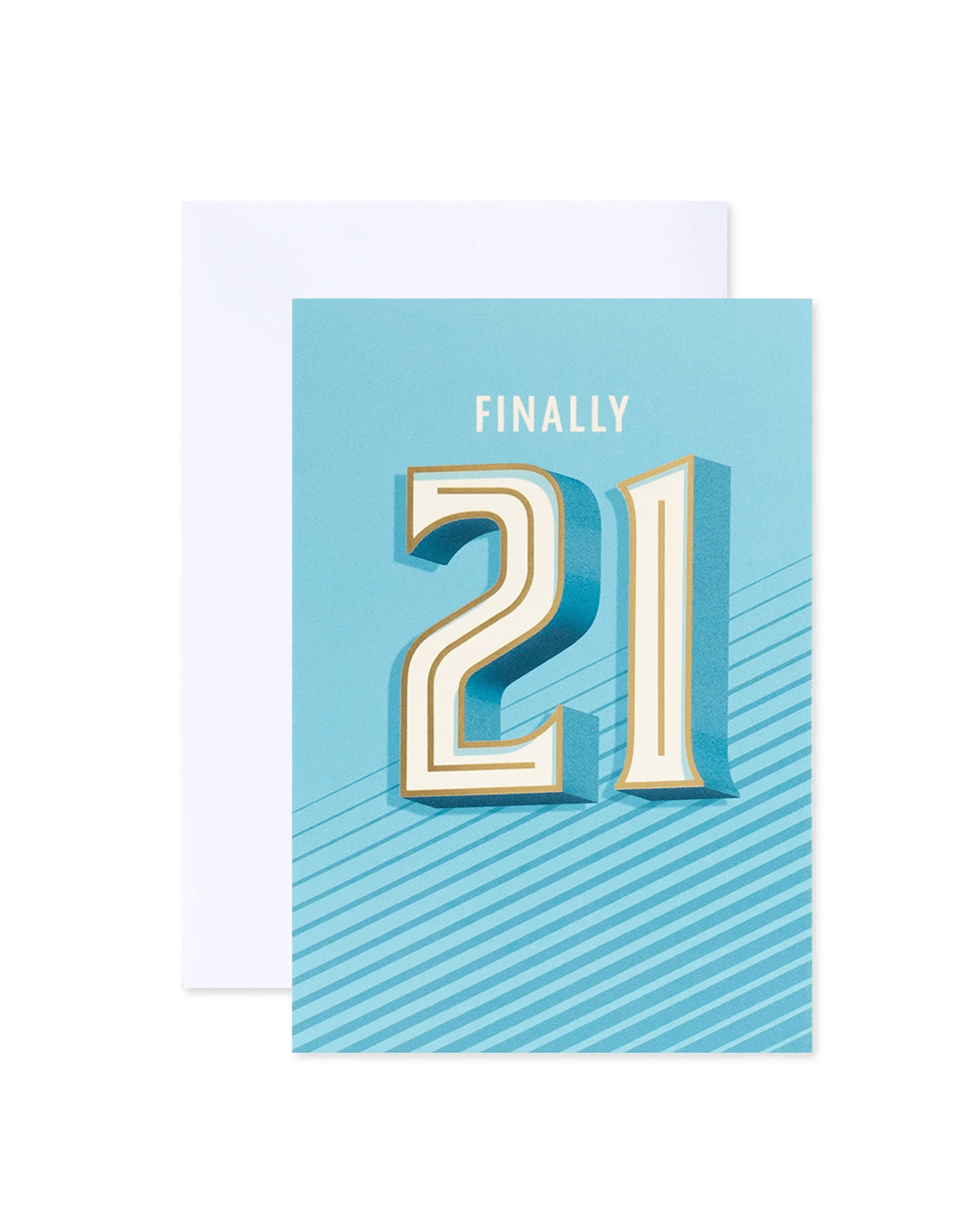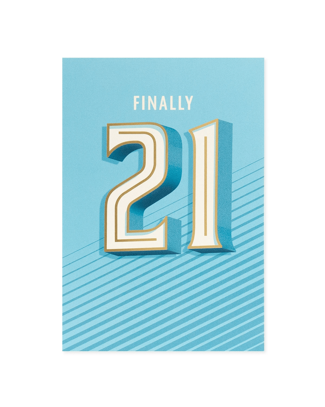 • Front of card features gold foil detailing with the message: Finally 21