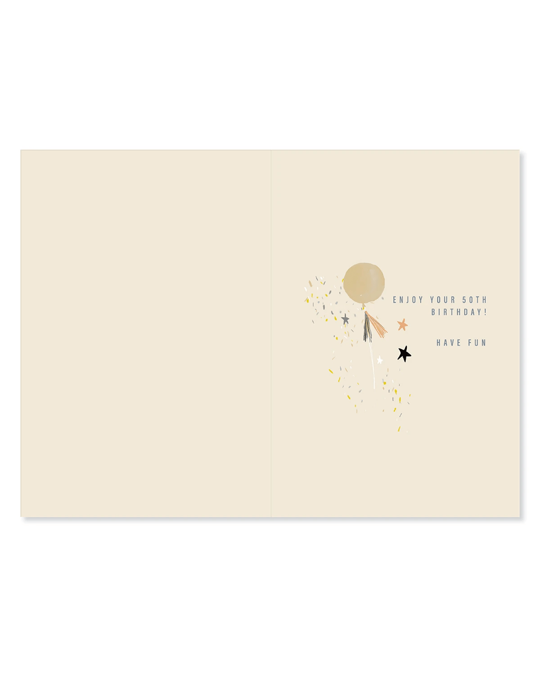 • Inside message reads: 'ENJOY YOUR 50TH BIRTHDAY! HAVE FUN'