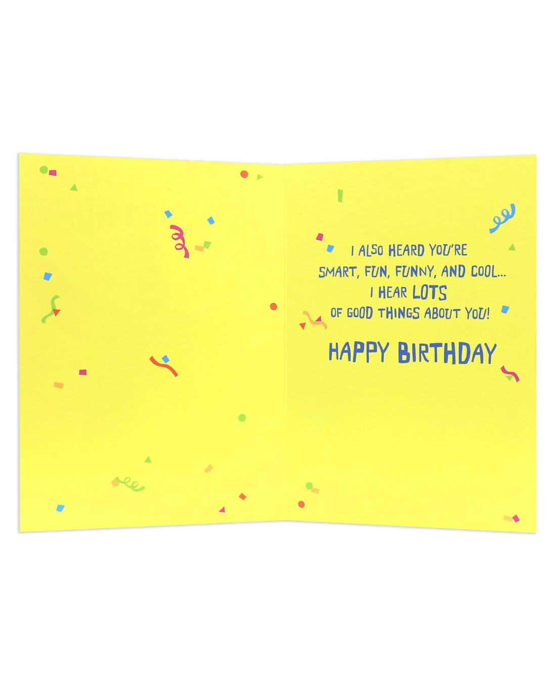 • Inside message reads: 'I also heard you're smart, fun, funny and cool… I hear lots of good things about you! Happy Birthday'