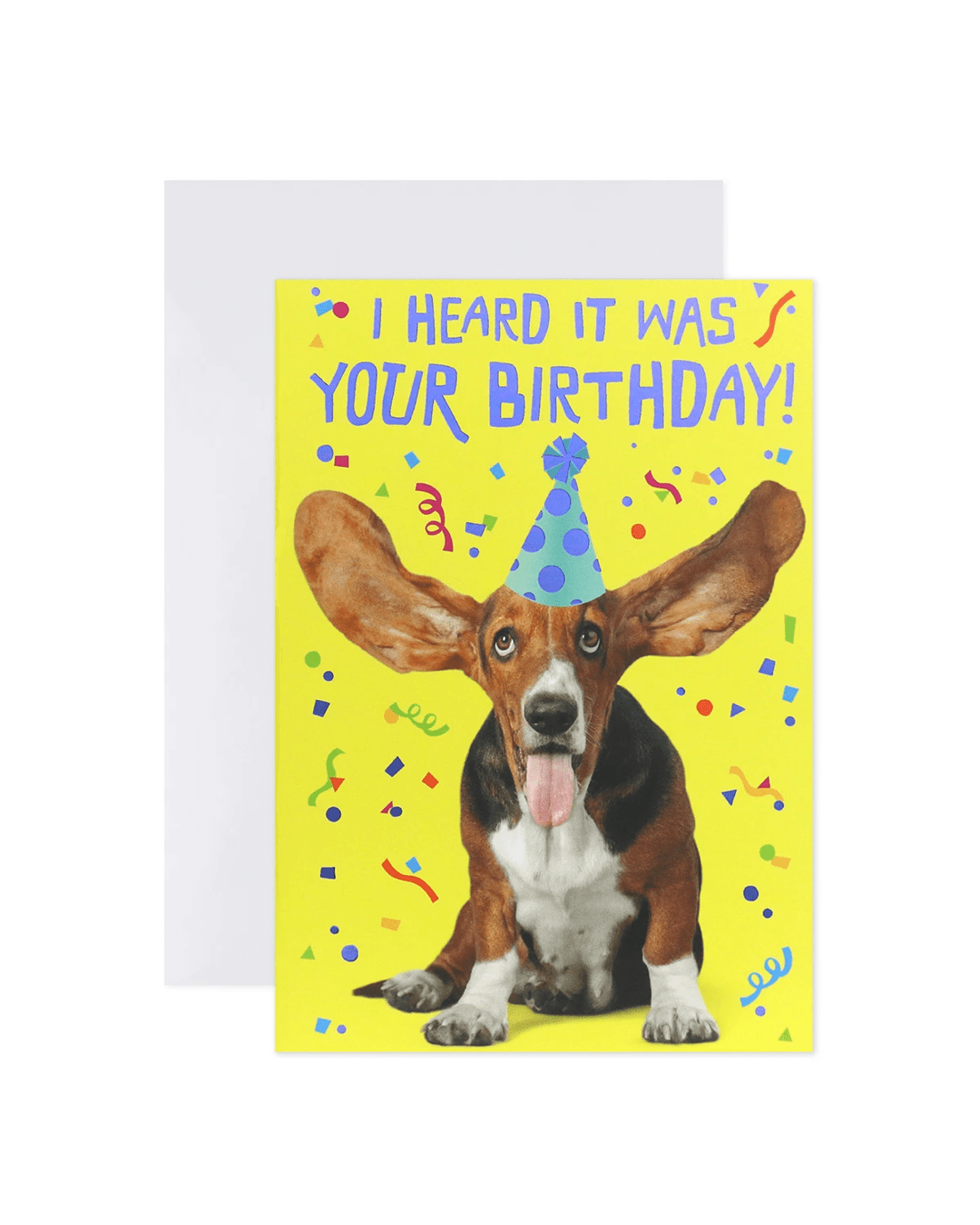 Celebrate a special birthday with this fun card by Connections from Hallmark. Featuring a basset hound dog in a party hat.