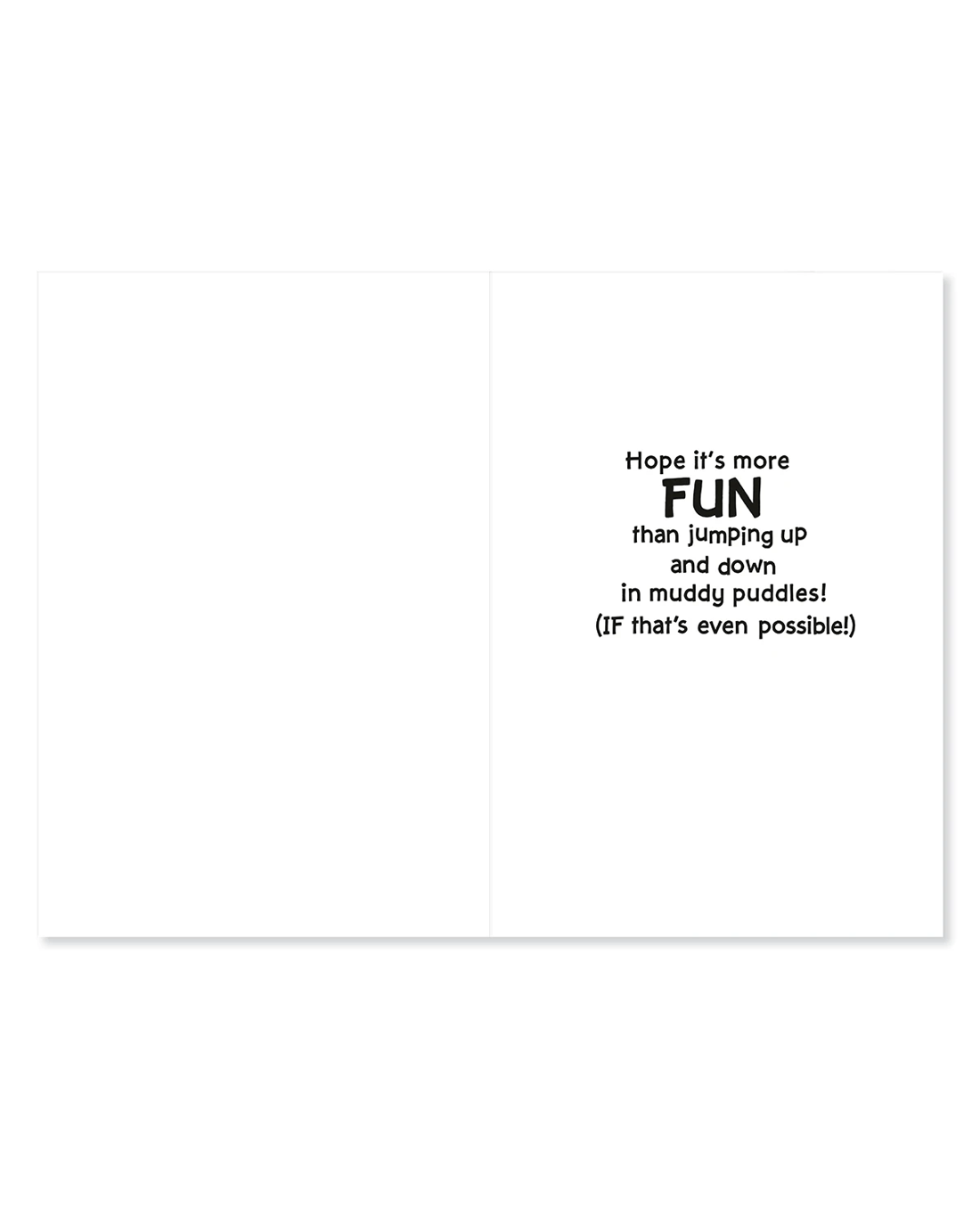• Inside message reads: 'Hope it's more FUN than jumping up and down in muddy puddles! (IF that's even possible!)'