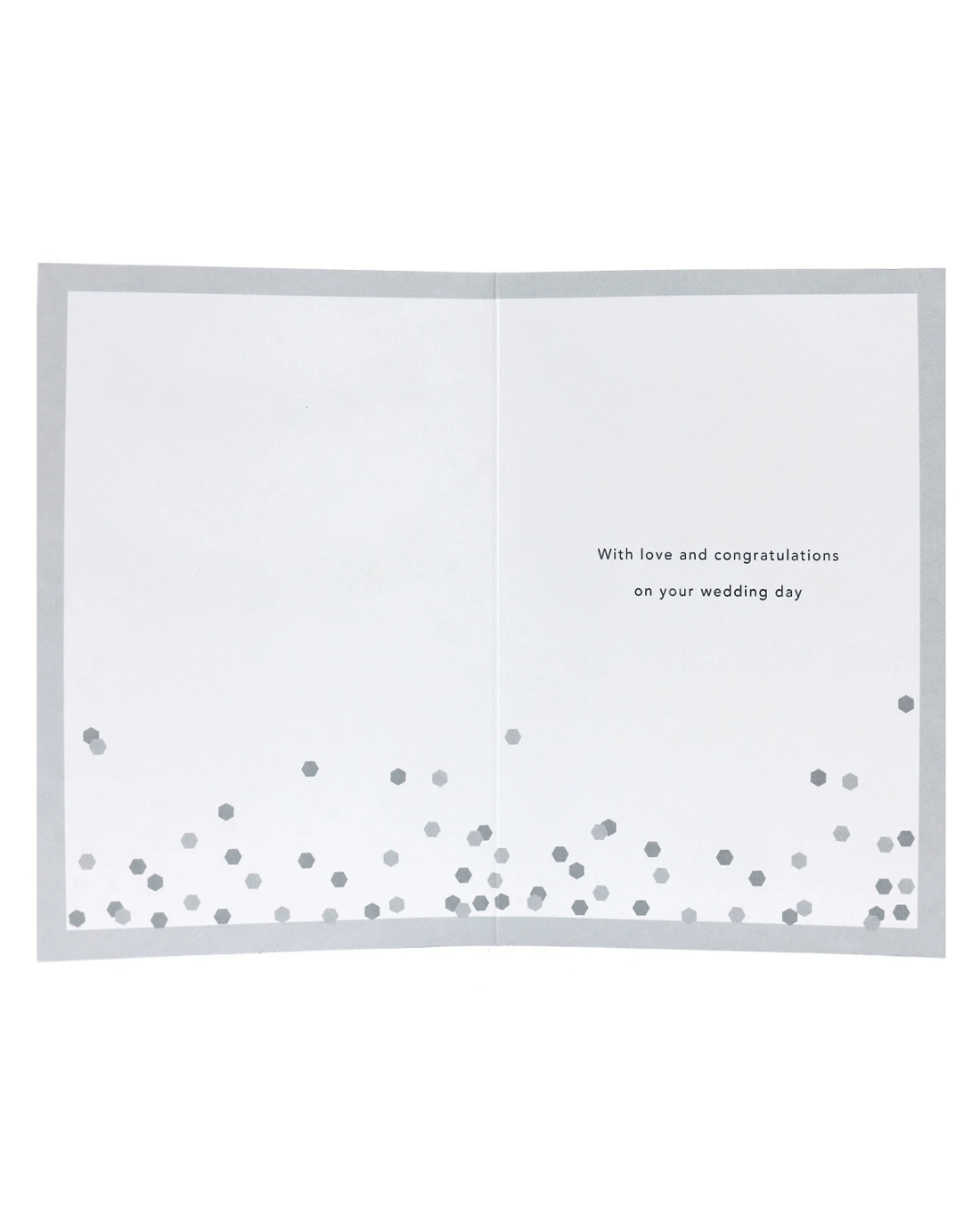 • The inside of the card features illustrations of confetti alongside the message 'With love and congratulations on your wedding day'