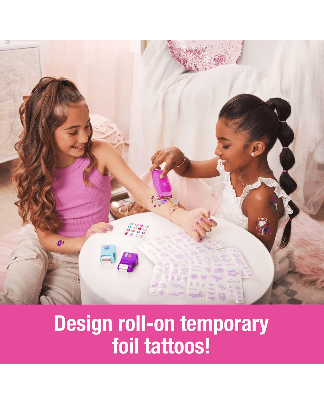 - Create fab foil temporary tattoos: Comes with everything kids need to design their own temporary roll-on body art ? 135 designs, 3 foils, jewels to decorate & an easy-to-use roller!