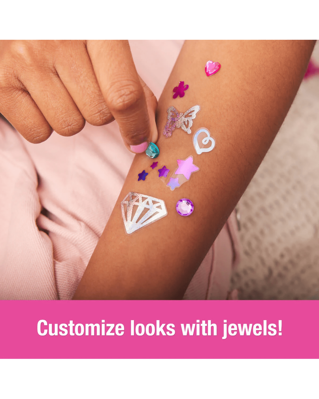 - 135 designs, endless combinations: Kids can express their style with double-sided temporary tattoo stickers like hearts, stars & more for unique looks & decorate their body art with jewels!