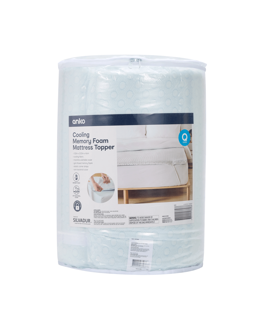 Cooling Memory Foam Mattress Topper - Queen Bed, White