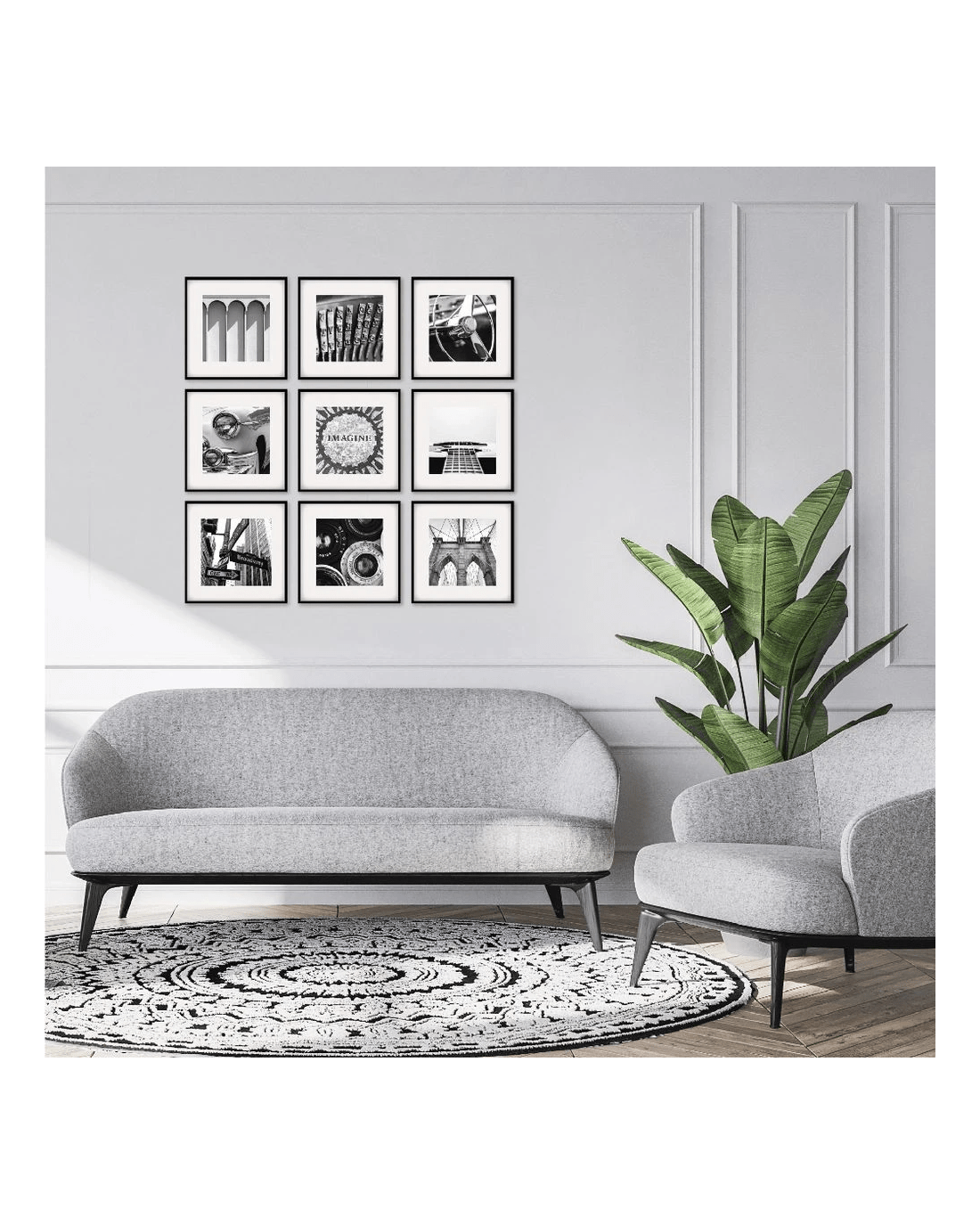 Create your own gallery wall in your space with these Square Frames. Each frame serves as a great place to display memories of loved ones and friends, with each frame coming with a metal hanger for vertical or horizontal mounting. Use the included spirit level and wall hooks to plan your gallery layout, and get to showing off your sentimental mementos.