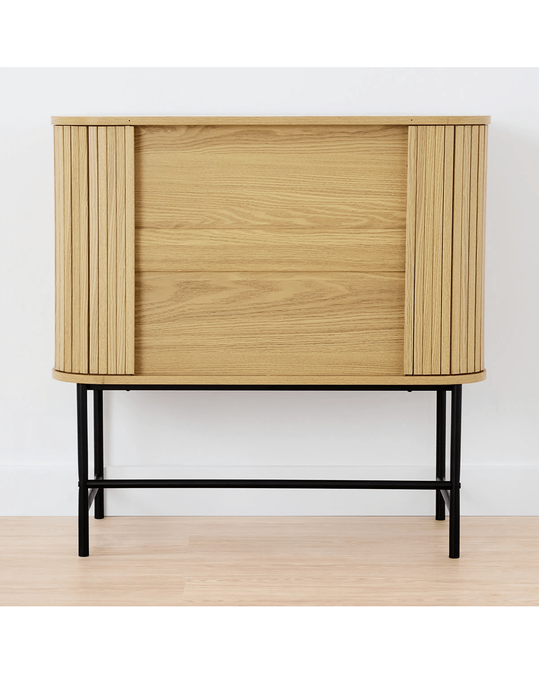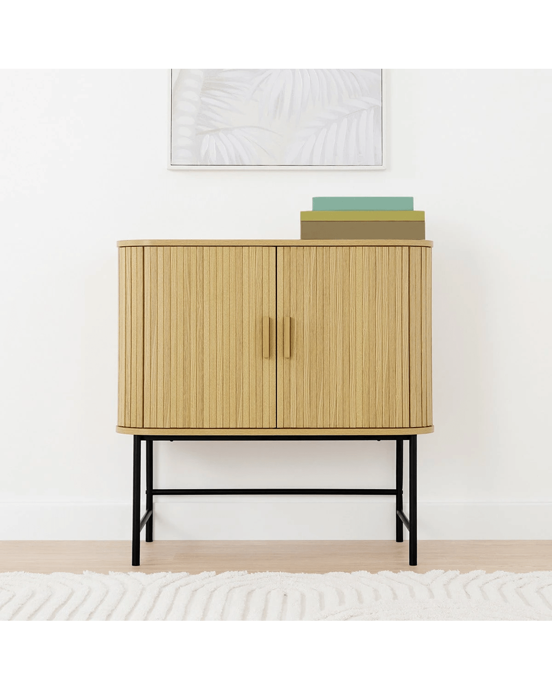 - Material: Medium-density fibreboard (MDF) with paper veneer, particle board (PB) with paper veneer and metal