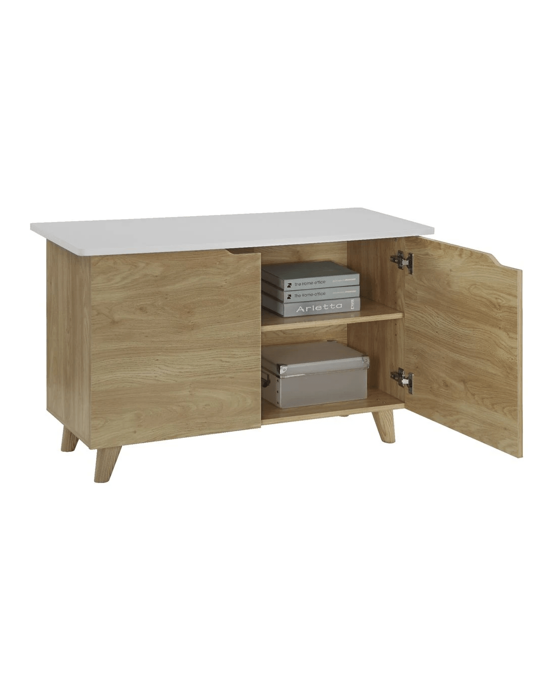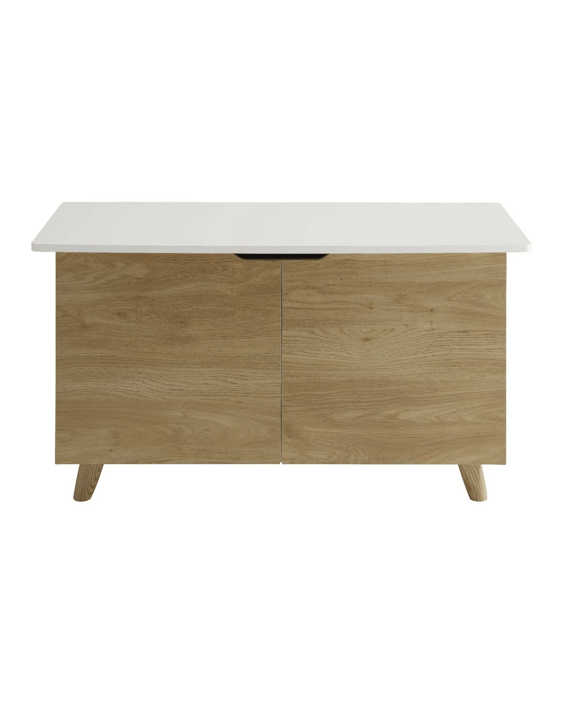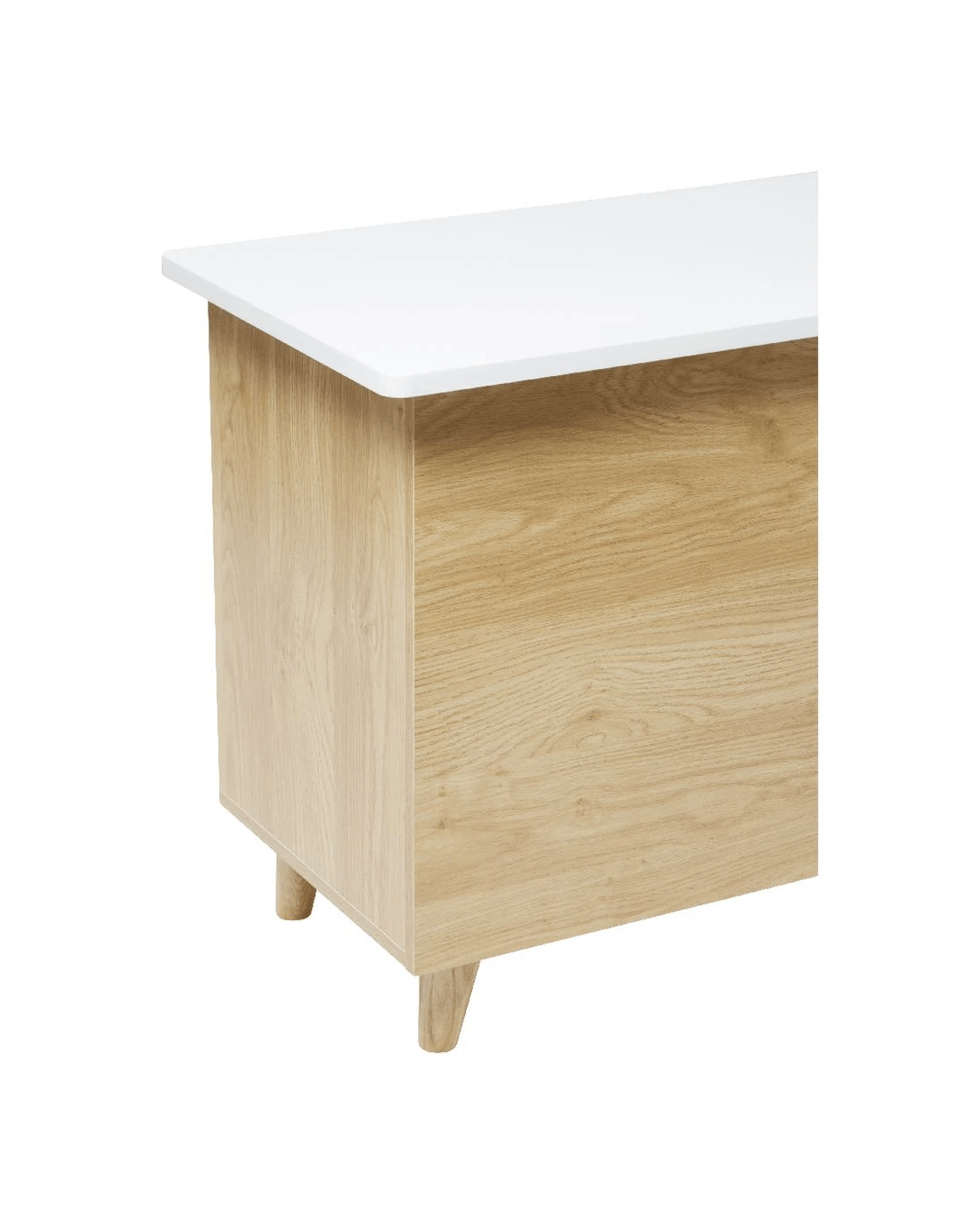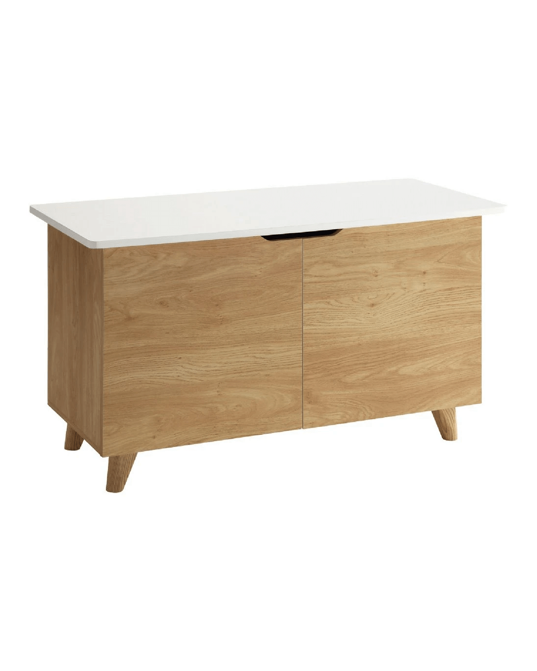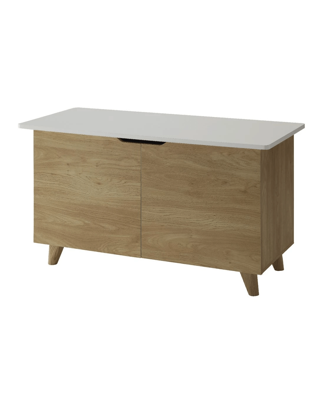 - This piece of furniture has a white and oak design