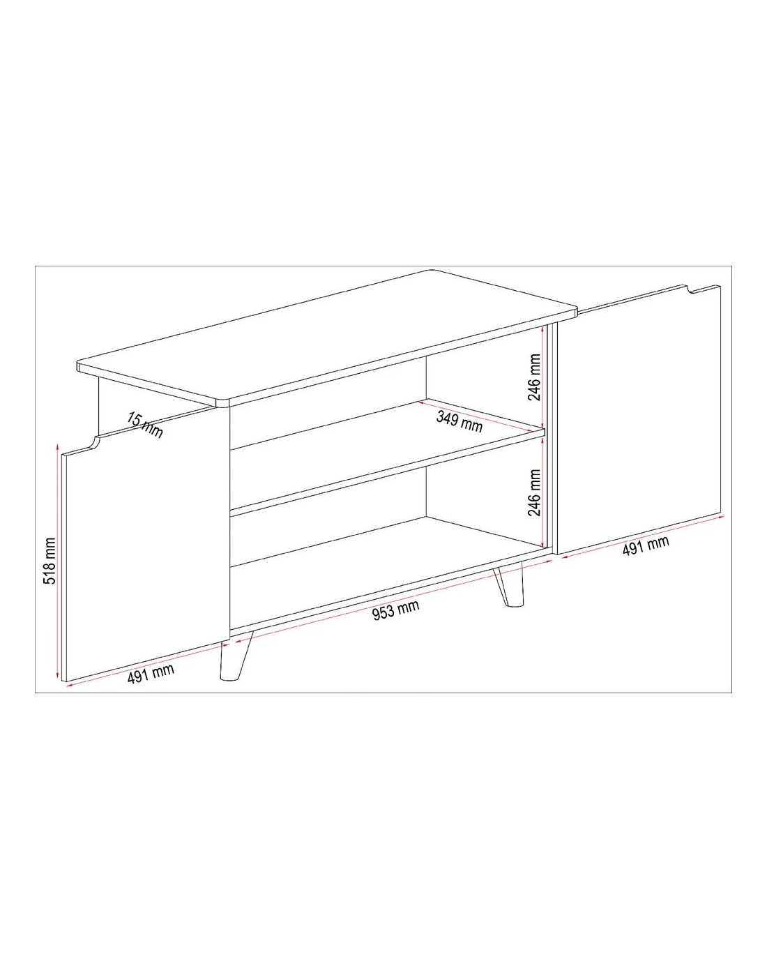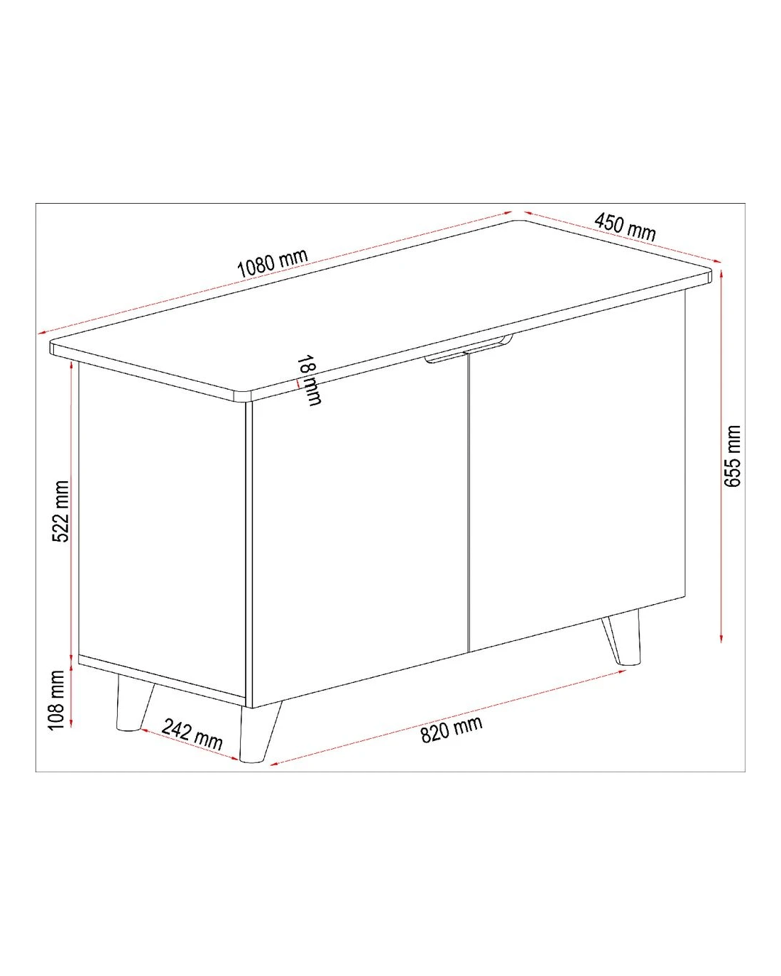 - Once assembled the cupboard measures 1080 W x 450 D x 645 H mm.