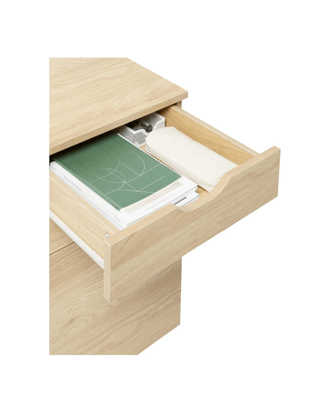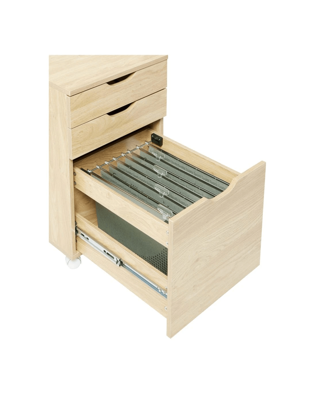 The Copenhagen 3 Drawer Mobile Pedestal has been designed with Scandinavian neutral tones in mind. It features 2 stationery drawers and a filing drawer so you'll be able to keep your knick knacks out of sight, adding to the minimalistic look of your space. The pedestal has 5 white castor wheels for easily moving it around your workspace or underneath your Copenhagen desk or workstation.