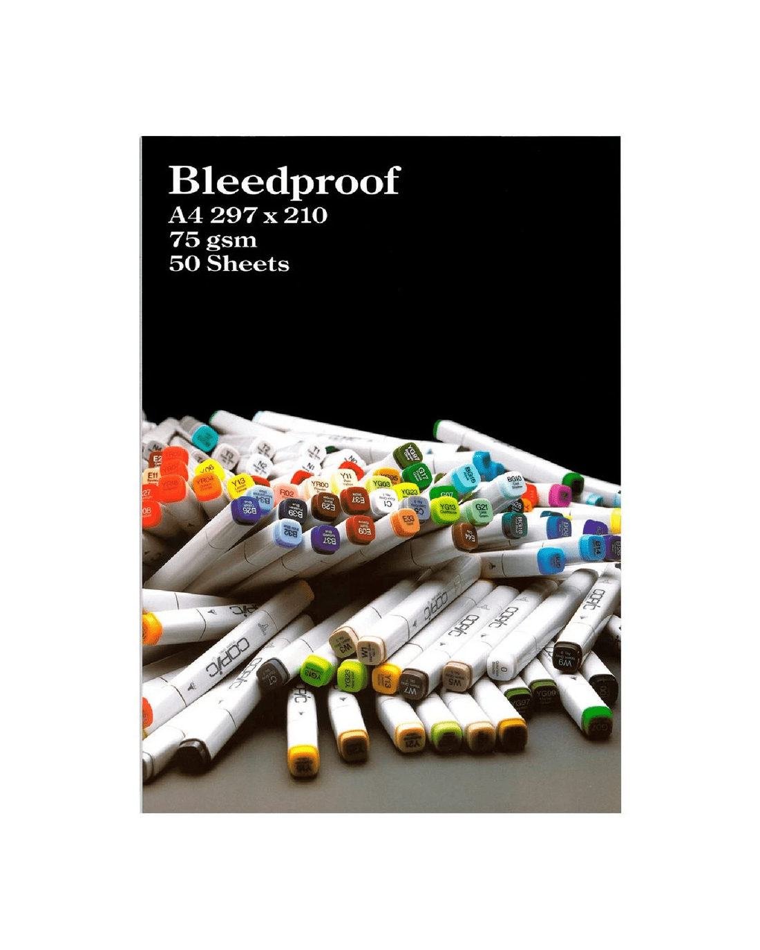 This Copic A4 Bleedproof Pad contains 50 sheets of paper which is perfect for use with pens, pencils and markers. The 75 gsm paper has been specially treated to ensure that alcohol markers lines will remain crisp and sharp.