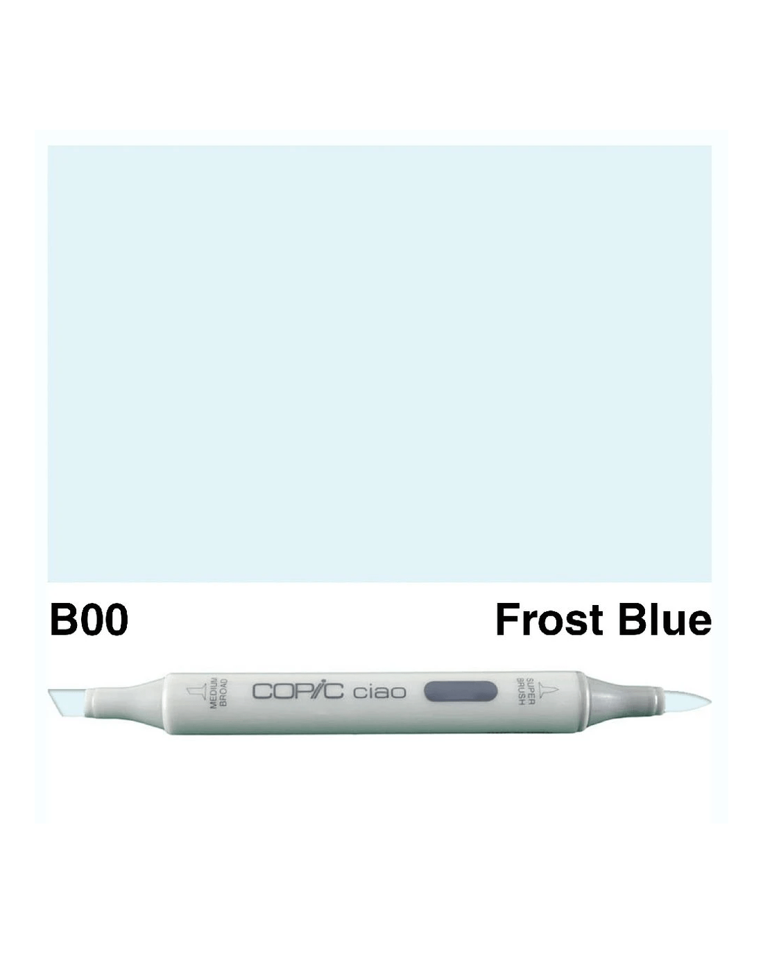 - This marker is known by the code and colour B00 Frost Blue.