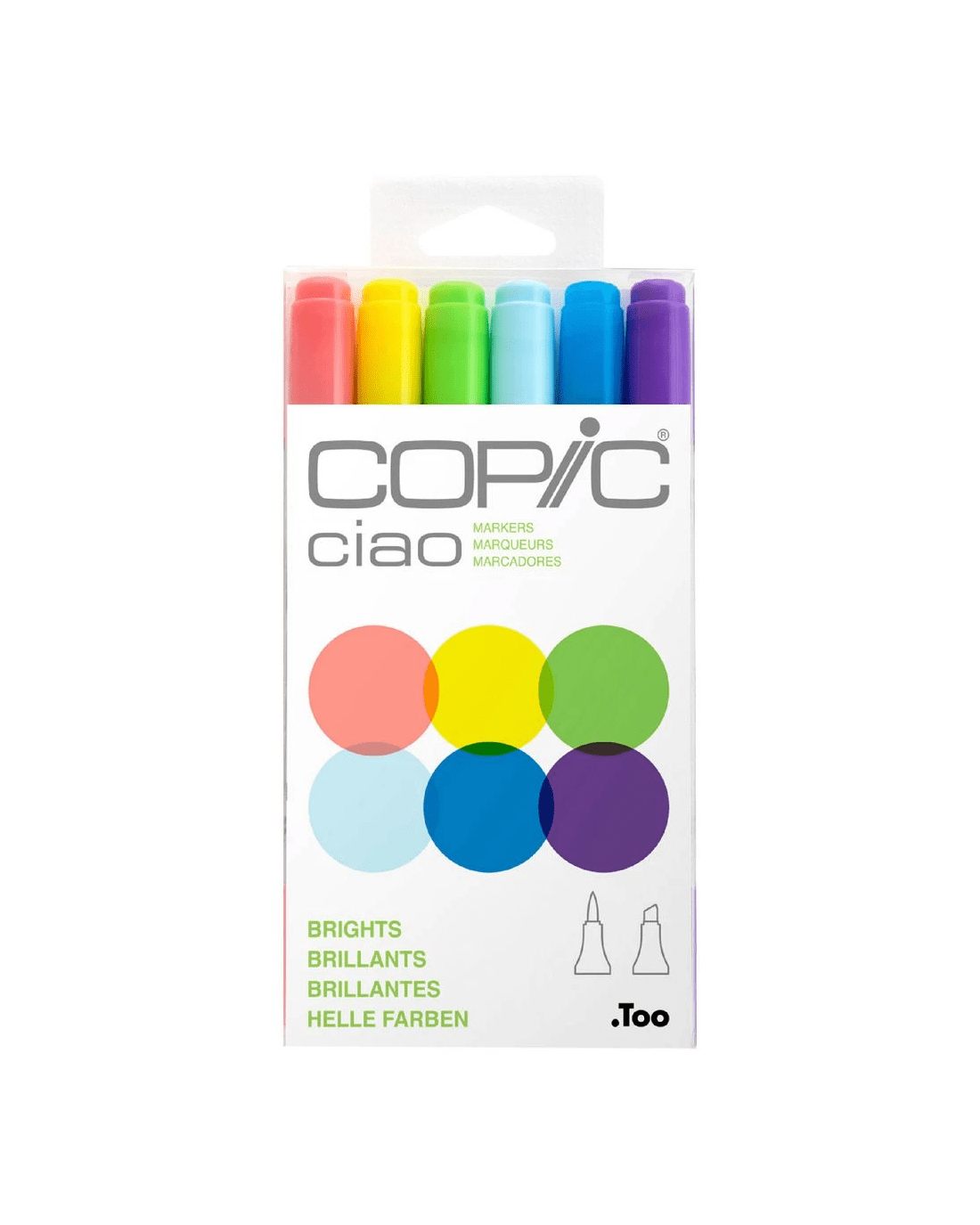 These Copic Ciao Markers are double-sided markers that have a dual brush nib and a chisel nib which covers a wide variety of different brush strokes. These markers have non-toxic, alcohol based ink which produces bright and vibrant colours. The ink will dry acid-free on paper.