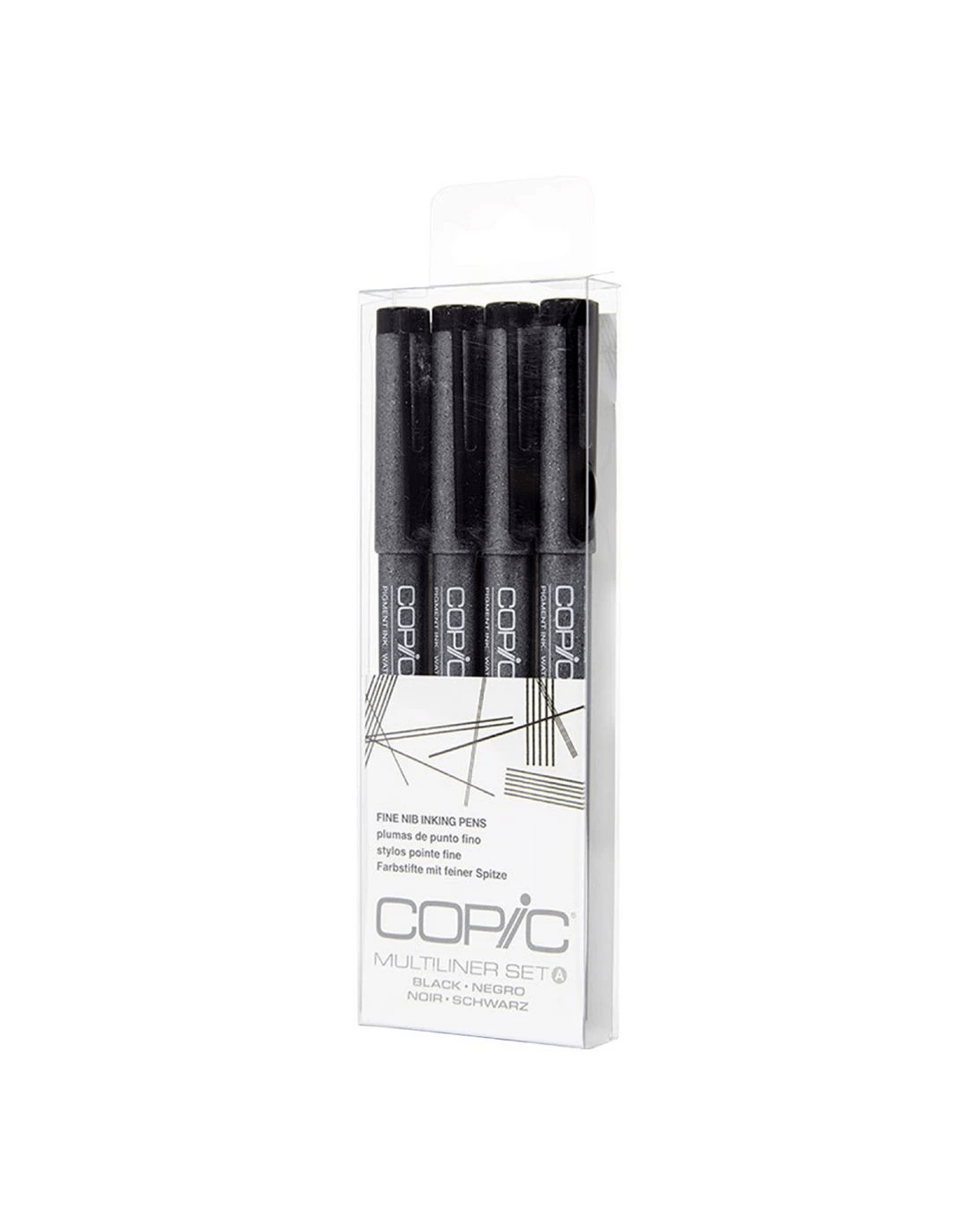 These Copic Multiliner Fine Nib Inking Pens offer 4 different fine line inking pens ranging between 0.3 mm and 0.03 mm. They contain pigment-based ink which is waterproof, photocopy safe and acid-free. These are compatible with Copic Markers and are ideal for fine art, design, architecture and more.