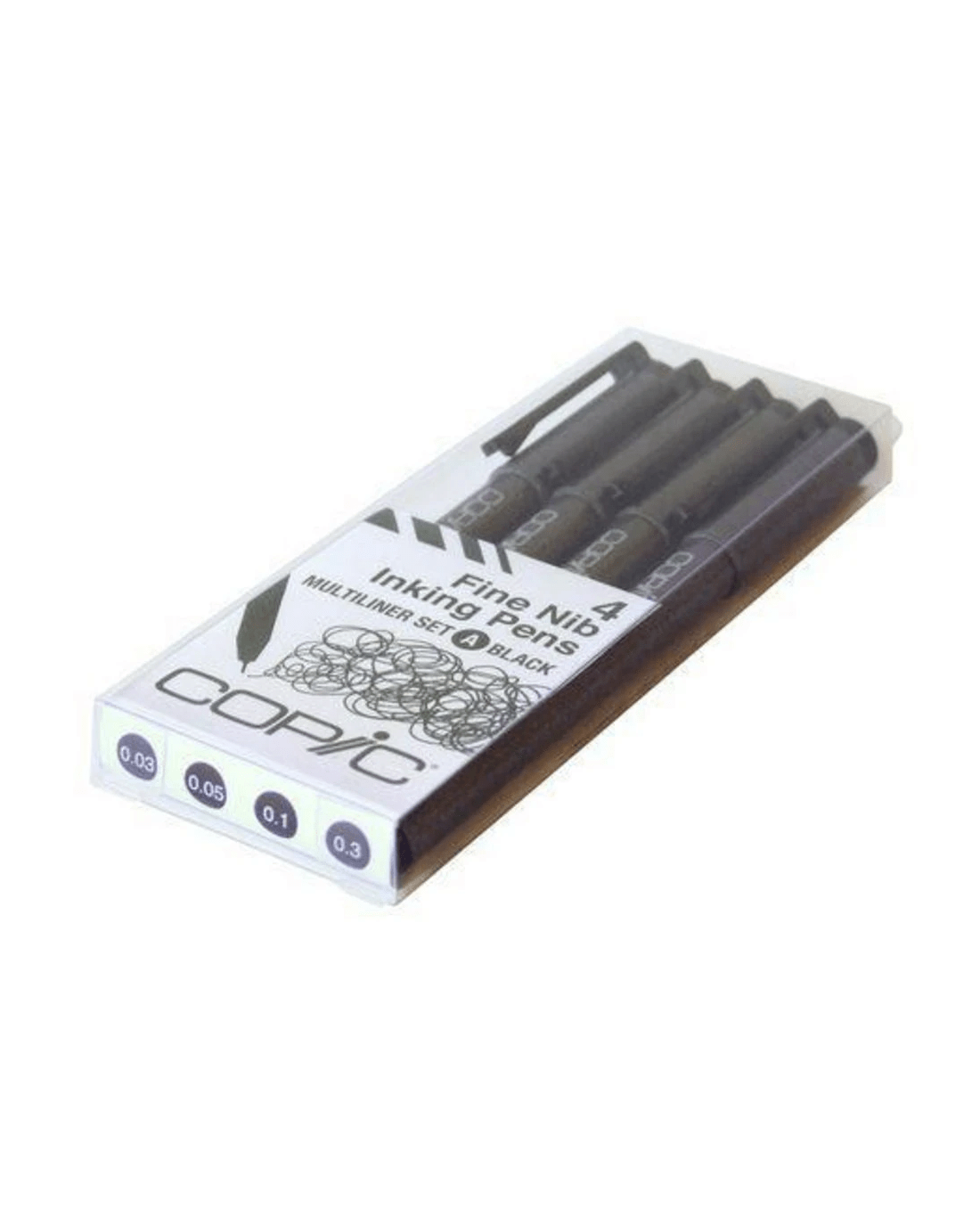 Sold by OfficeworksCopic Multiliner Fine Nib Inking Pens Set A Black 4 Pack