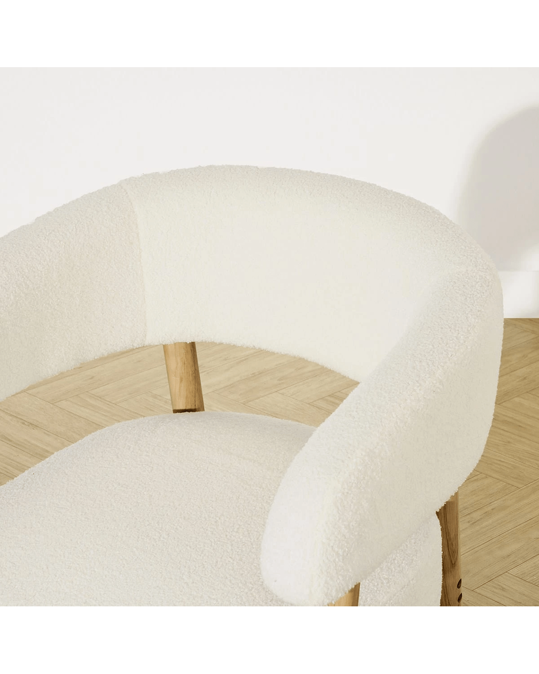 This Cora Boucle Lounge Chair is the perfect pick for enhancing the look of your indoor space and adding a functional seating option.