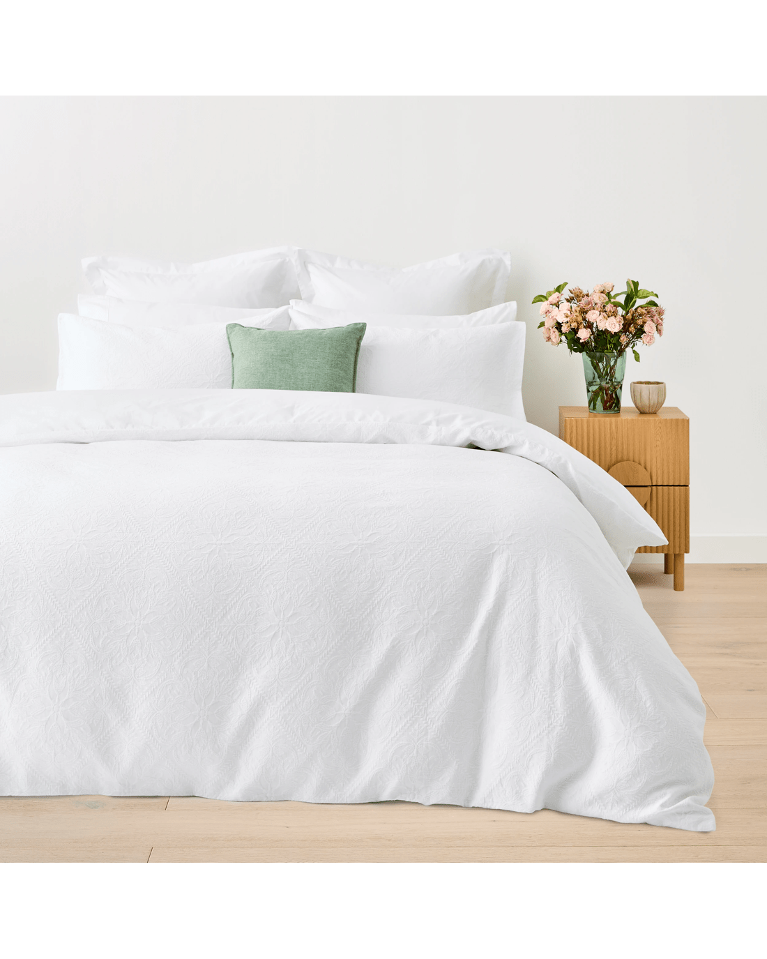 Cora Matelasse Australian Cotton Quilt Cover Set - Double Bed, White