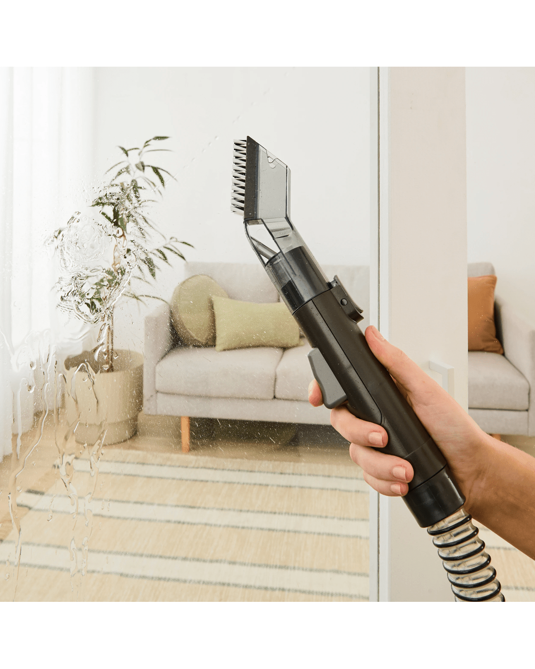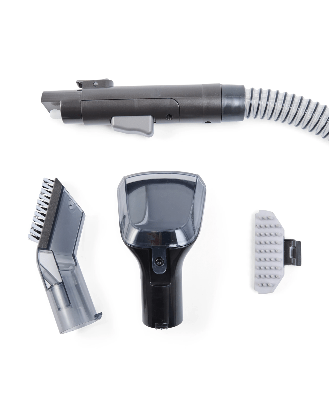 - Accessories included: Crevice head with brush, vacuum head with bristle/silicone attachment