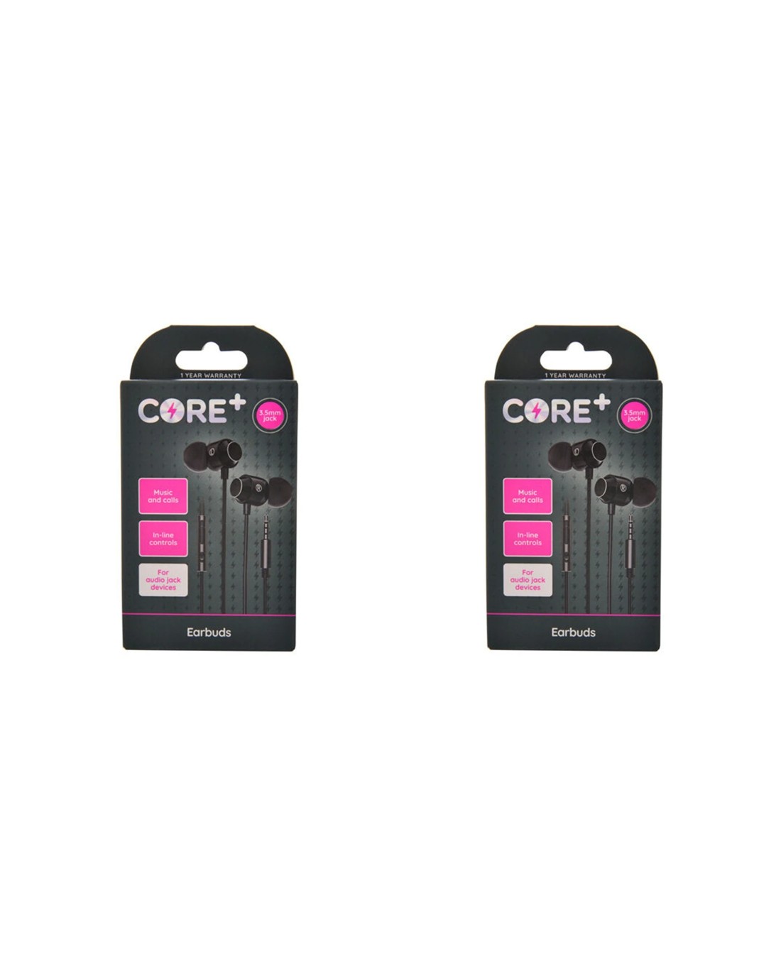 The Core 3.5mm Earphones Earbuds 2PK are designed for versatile mobile audio use, allowing you to listen to music or answer calls with ease. They offer reliable compatibility with any device featuring a 3.5mm audio jack and include inline controls for convenient management of calls and playback.