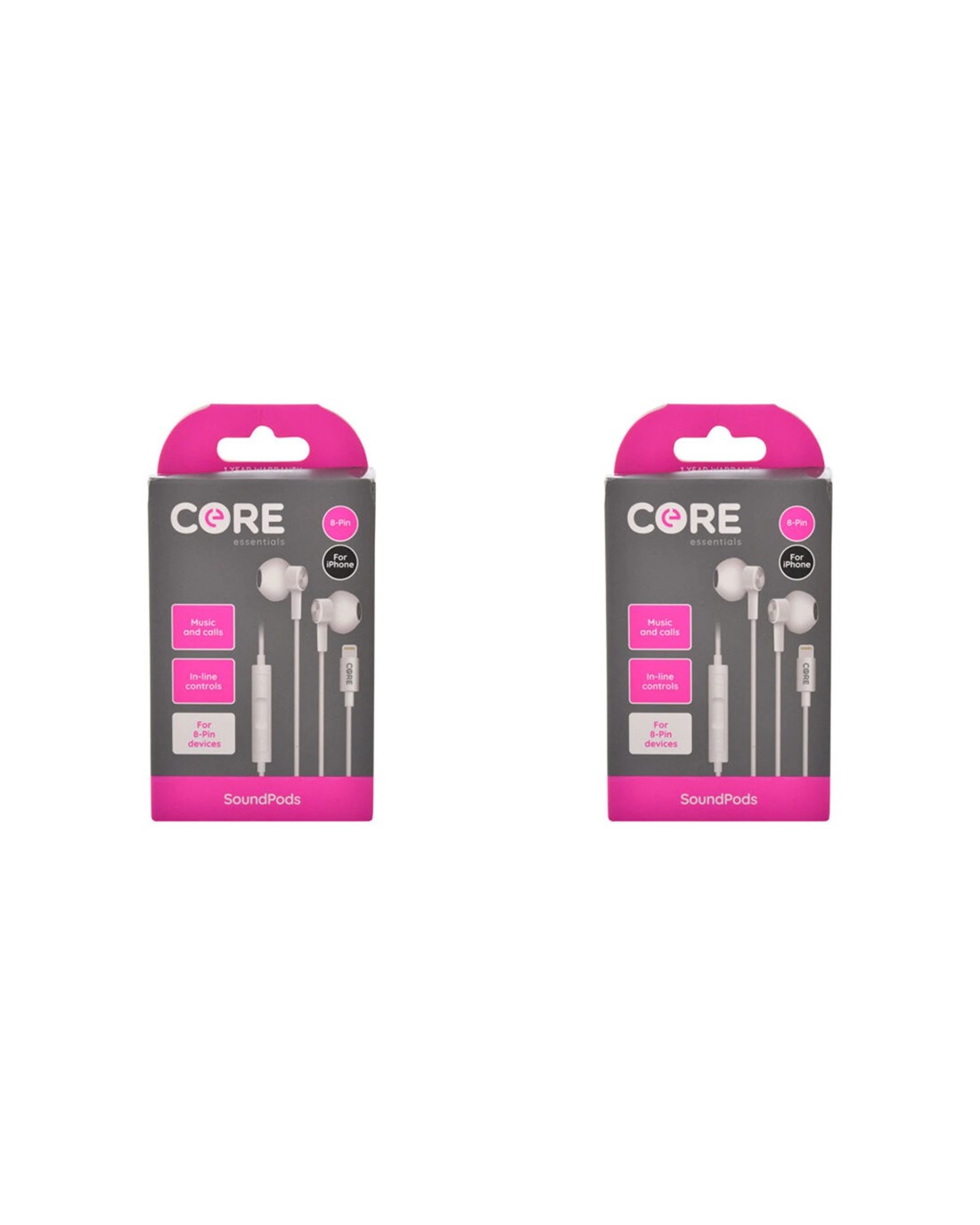 Sold by KG SuperStoreCore Essentials 8-Pin SoundPods Earphones 2PK Wired In-Ear With Mic 1.2m Cable - white