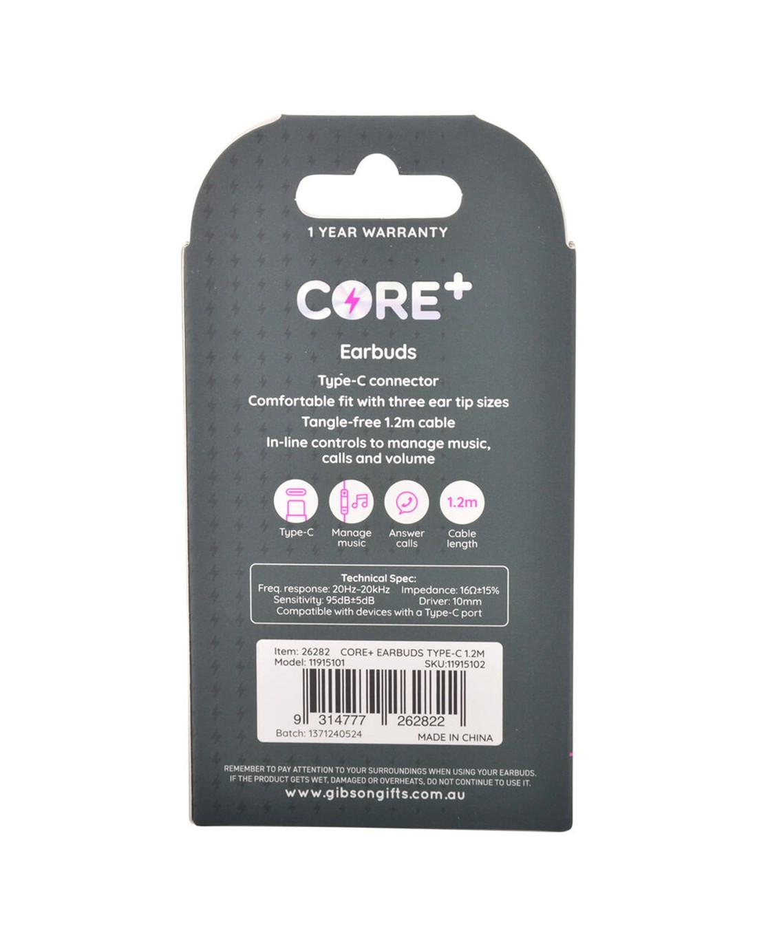 The CORE Type-C In-Ear Earphones are designed for seamless use with compatible Type-C devices. These wired earbuds deliver reliable audio performance along with convenient inline controls for managing music and calls, making them ideal for on-the-go use.