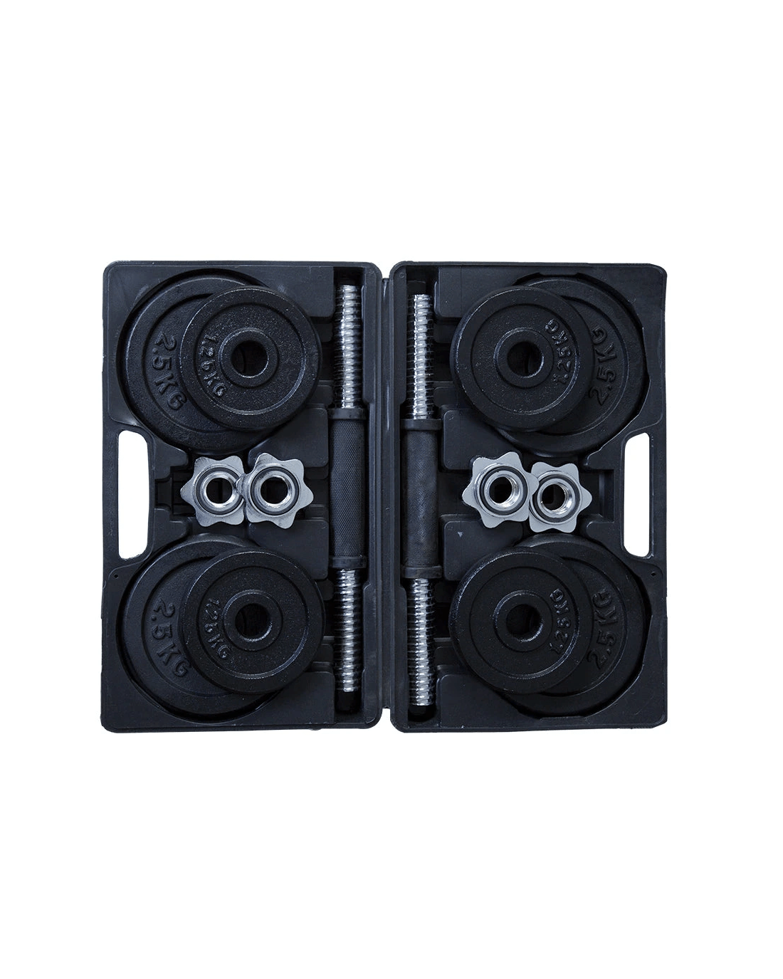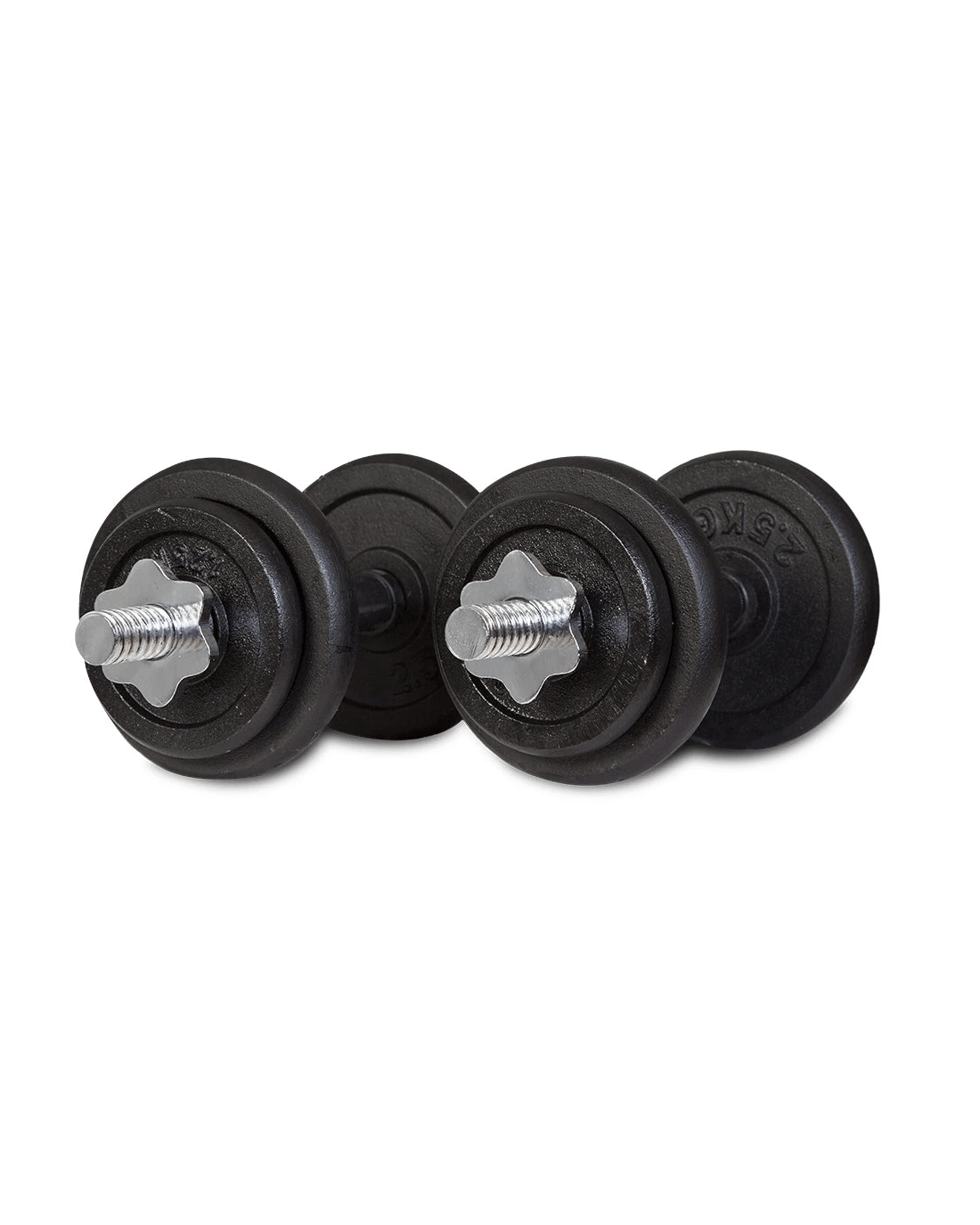 Weight Set Items: 2x Dumbbells with rubber grips (2.5kg each) and Star Spiral lock collars
