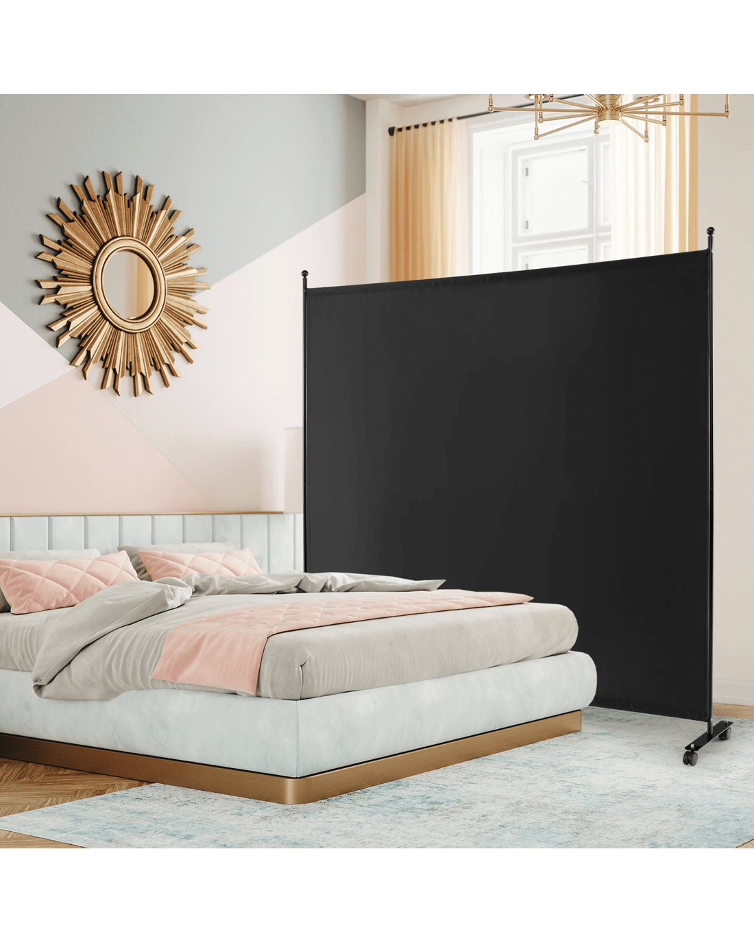 Crafted with a rust-resistant, durable metal frame that is capable of bearing substantial weight, this single panel partition offers both strength and longevity. Its premium polyethylene fabric is wear-resistant, non-see-through, and a breeze to clean. The lightweight frame includes rolling wheels for easy mobility, allowing you to effortlessly adjust your space as needed. Measuring 184 cm in both length and height, this partition is perfect for enhancing privacy and comfort in various settings such as living rooms, hospitals, schools, and offices.