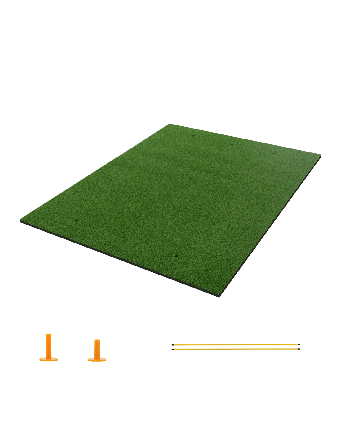 Costway 1.2x1.5m Golf Hitting Mat Artificial Turf Pad w/2 Rubber Tees & Alignment Sticks Golf Training - Green
