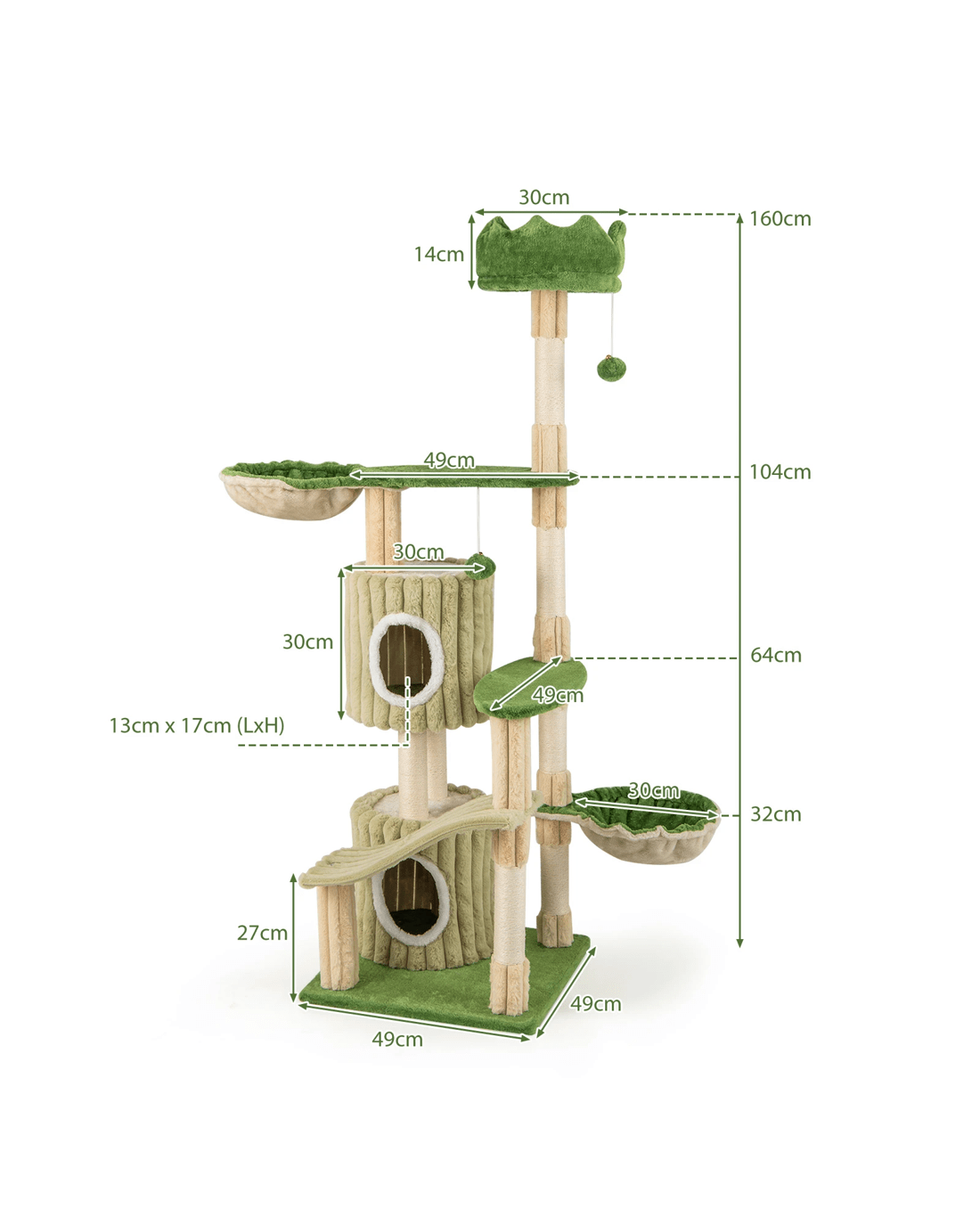 Costway 1.6M Cat Tree Tower Kitten Cando House w/Sisal Scratching Post