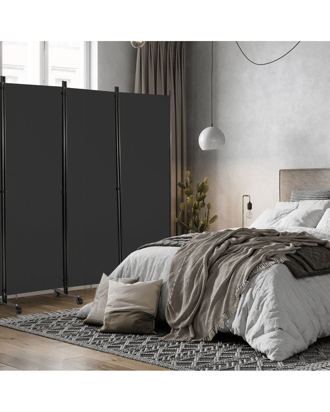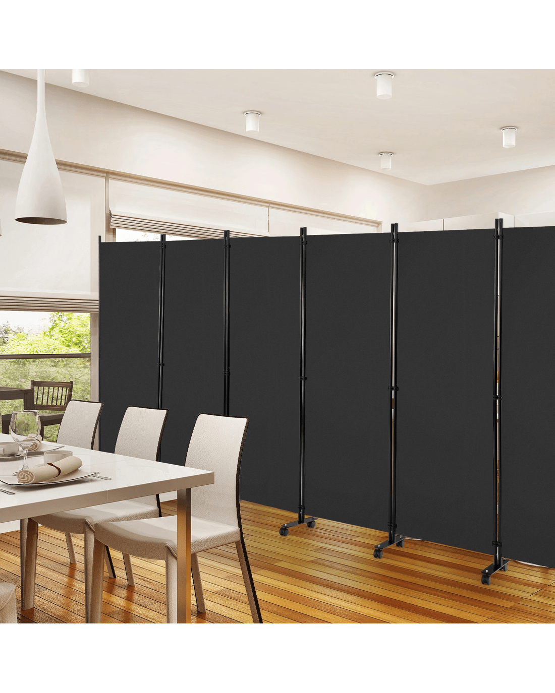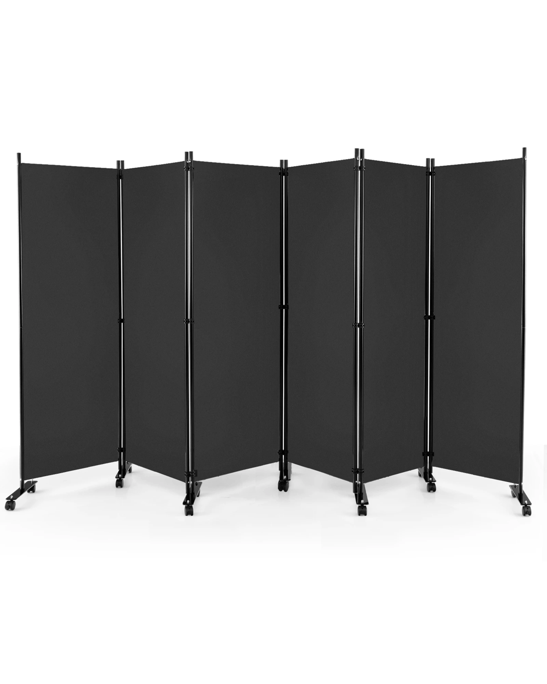 Costway 1.72m 6-Panel Folding Room Divider Rolling Mobile Privacy Screen w/Lockable Wheels - Grey