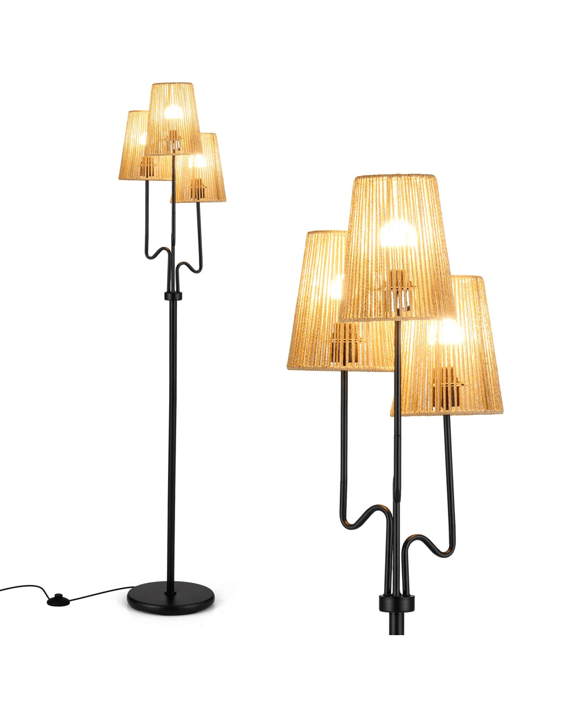 Sold by CostwayCostway 1.75M Tall Floor Lamp Boho 3-Light Standing Lamp w/Rattan-Style Lampshades