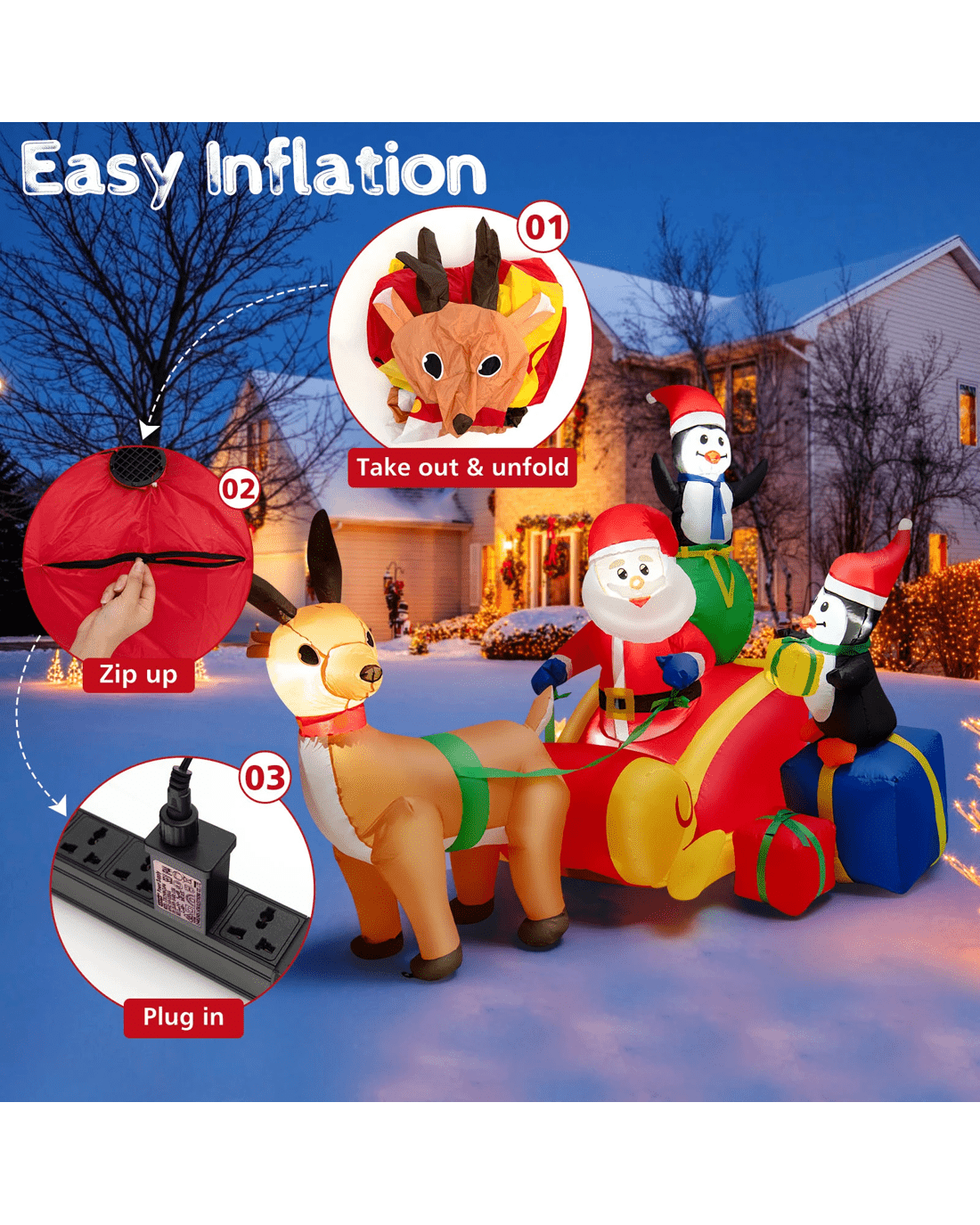 Costway 1.8M Inflatable Christmas Decorations Santa Sleigh Reindeer Outdoor Xmas Lights Party Decor