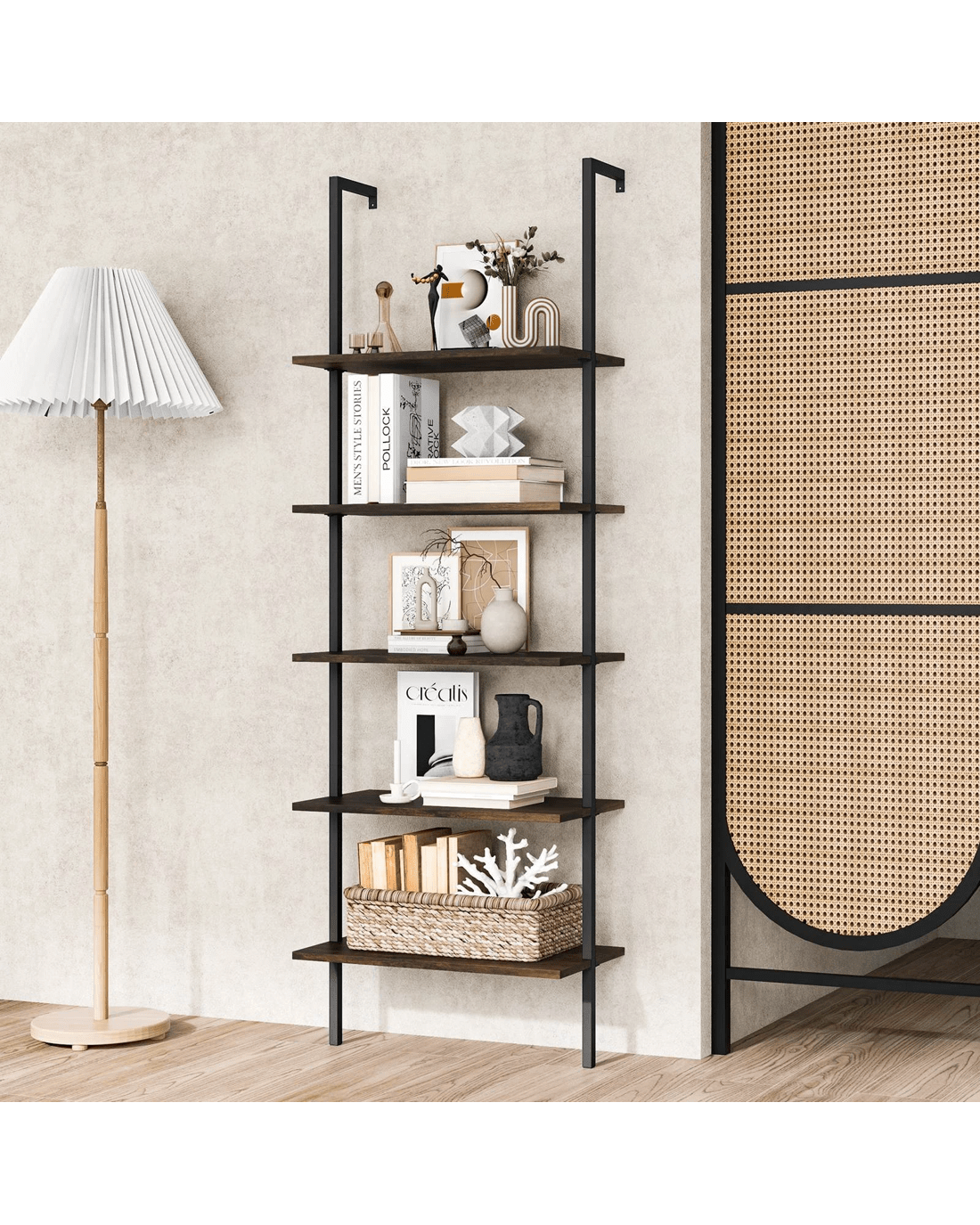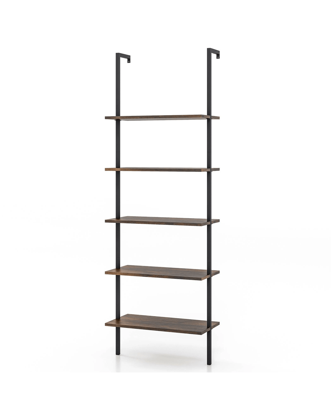 Costway 1.8m Ladder Shelf 5-Layer Display Storage Rack Wall Mounted Bookcase Home Office - Brown