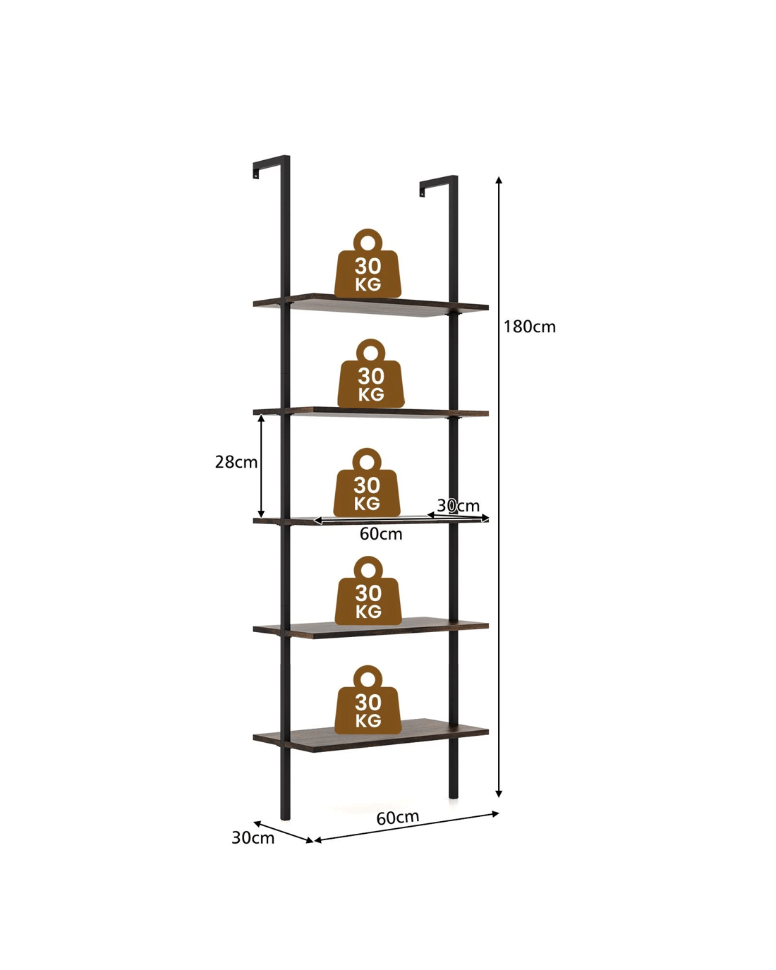 Our 5-tier modern ladder bookcase is the perfect addition to any living space, bringing warmth and character to your home. Its elegant and simple design, along with its solid and stable structure, will make you fall in love with this bookcase no matter where you place it. The 5-tier ladder design provides ample storage space and saves valuable floor space, making it suitable for use in the bedroom, living room, office, hallway, etc. Made from premium particleboard and a sturdy steel frame, this ladder shelf can support up to 30 kg on each level, ensuring long-lasting durability and support for your belongings. Its simple, elegant, and stylish appearance will complement any home decor seamlessly.