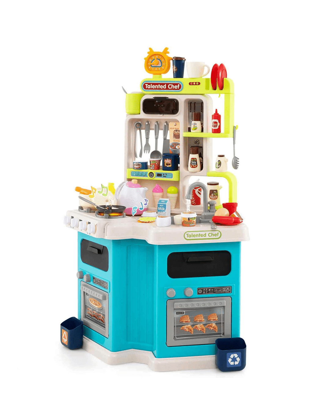 Costway 113PCS Kitchen Playset Corner Play Kitchen w/Sound Light - Blue