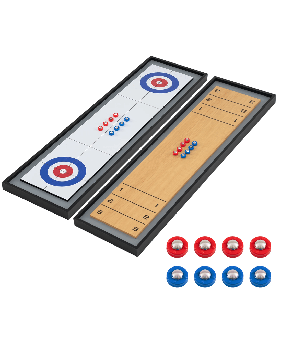Costway 114CM Portable Shuffleboard Curling Combo Set 2-In-1 Board Game Table Play 8 Pucks Party Gift