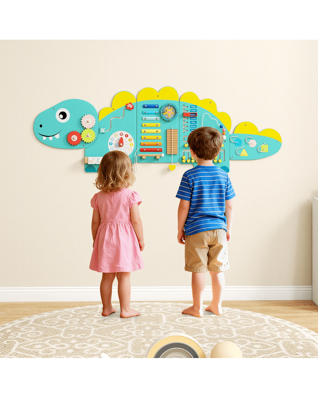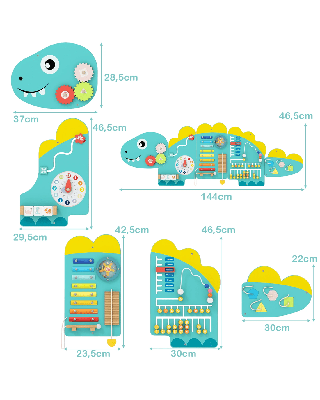 Costway 11in1 Wall Busy Board Panels Dinosaur-themed Sensory Board - Green