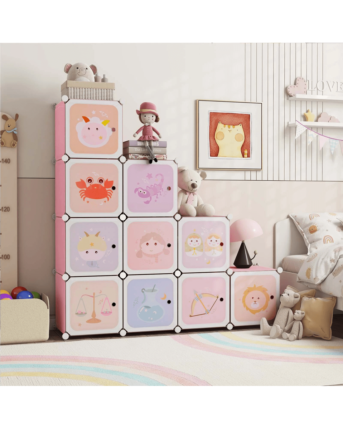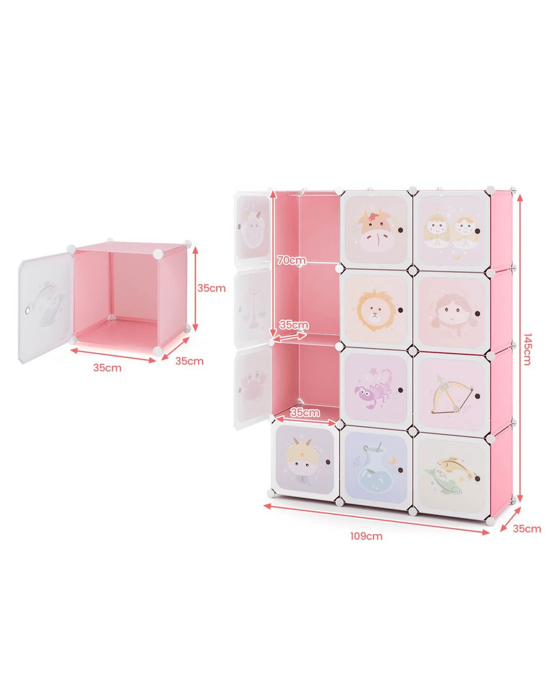 This 8 or 12 cube little ones wardrobe is an optimal storage solution and an ideal decoration to your home. Each cube can be used separately, or be stacked and combined to form a customized design. The cube storage organizer offers large capacity to bring you a clean and tidy space. Plus, it features cute patterns and has an adorable appearance, and is suitable for many places like little ones room, bedroom and dressing room. Made of quality materials, the little ones armoire is safe, durable and smooth, requiring simple maintenance to save you more entertainment time.