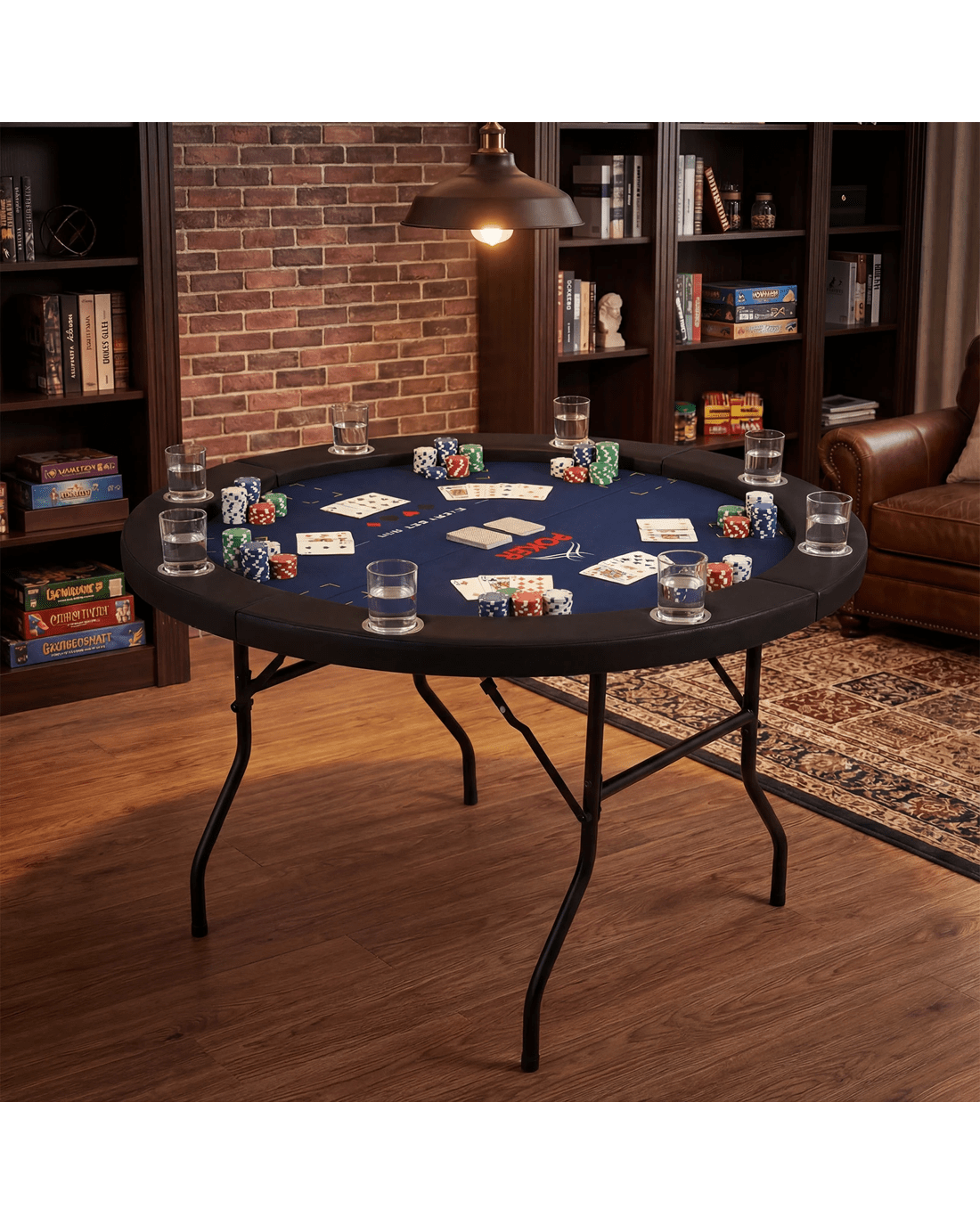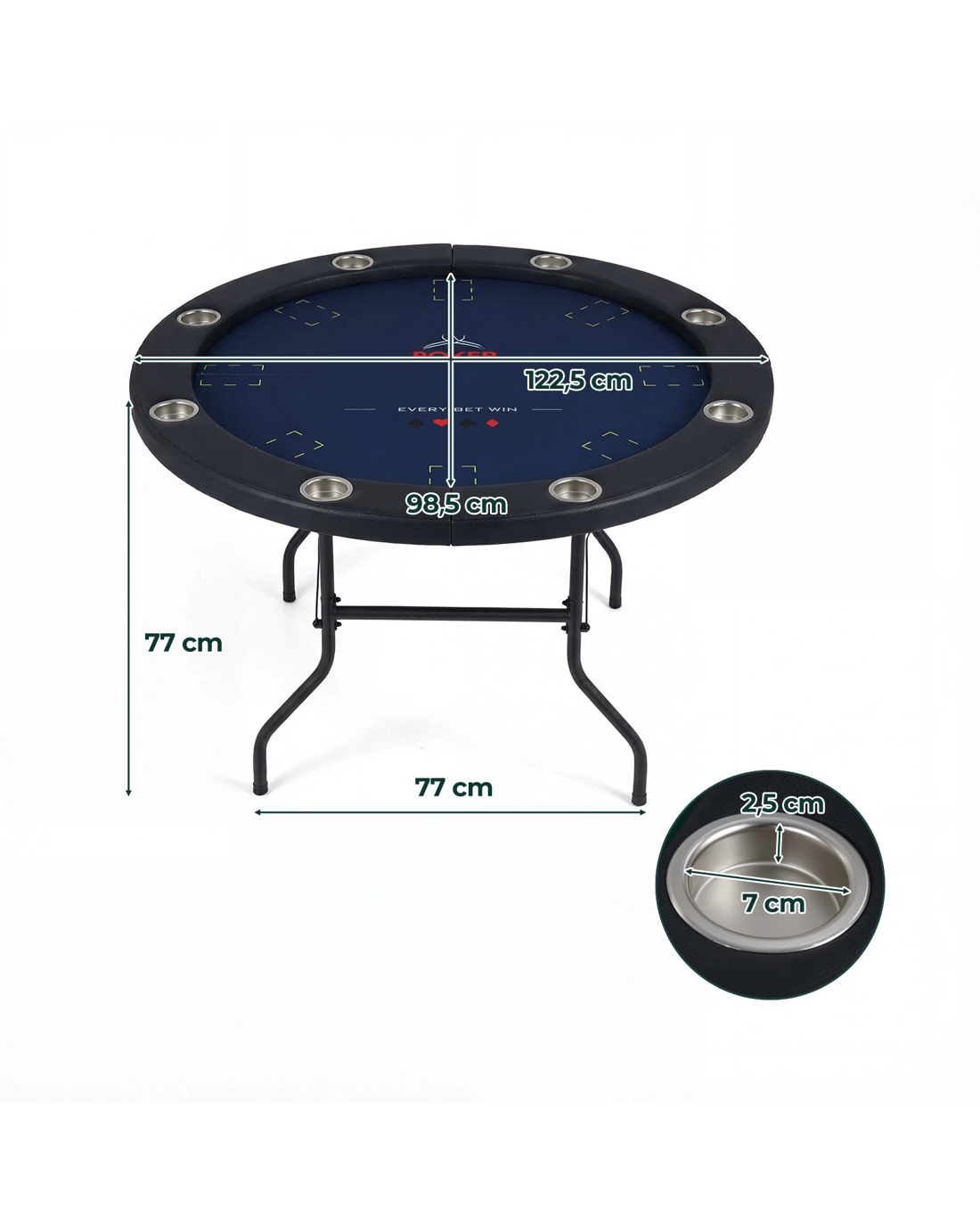 Costway 122cm Folding Poker Table Round Casino Leisure Texas Holdem Game Play Table for 8 Players - Blue