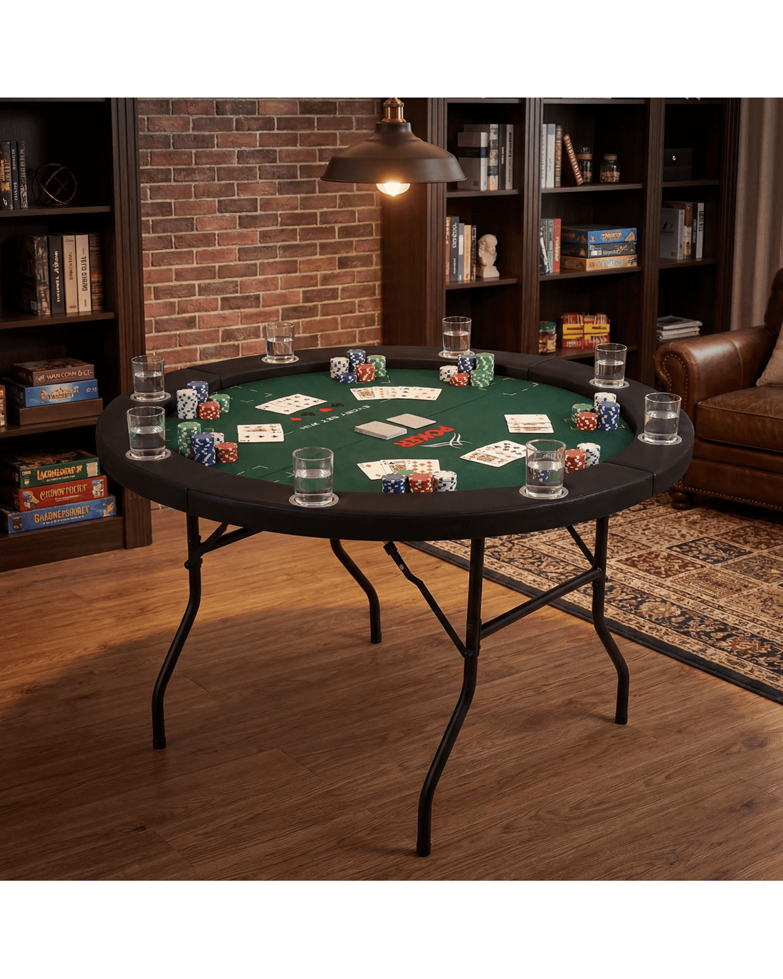 Bring the excitement of the casino home with this 122cm foldable poker table, designed for up to 8 players seeking authentic and immersive gaming experiences.