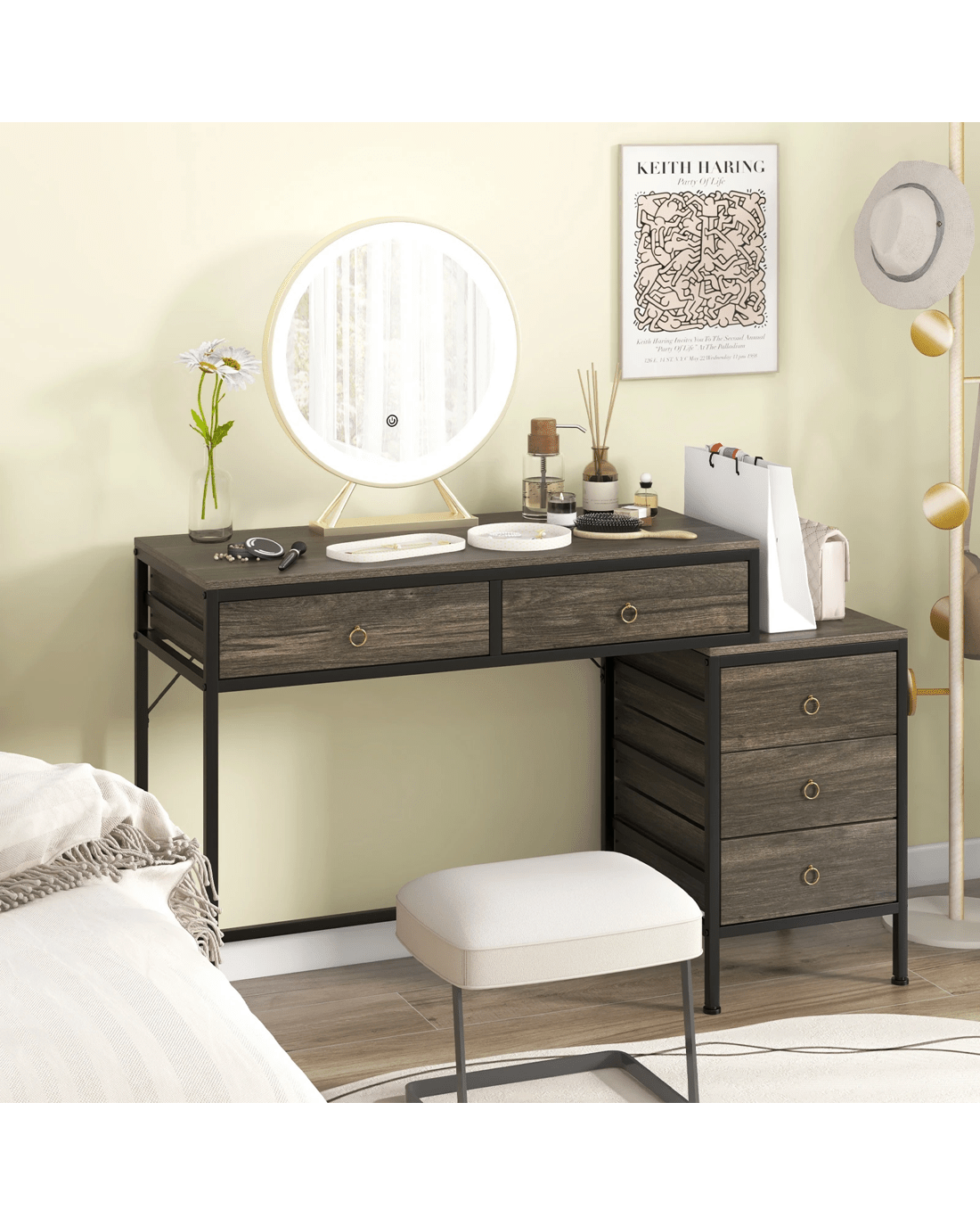 Ample storage space with 2 drawers under the desktop and 3 in the side cabinet