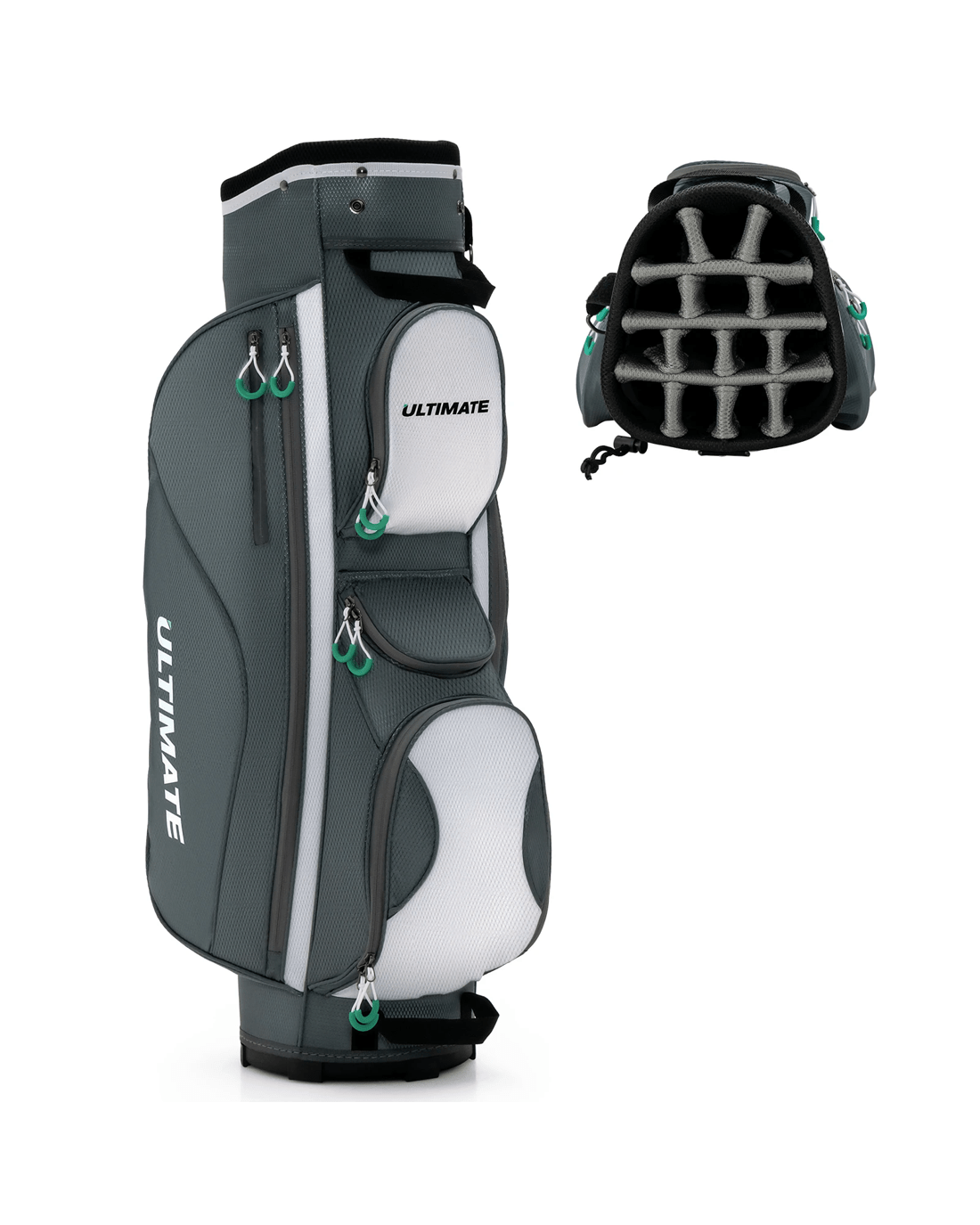 Costway 14 Dividers Golf Cart Bag Golf Travel Bag w/7 Zippered Pocket Cooler Bag Rain Hood - Grey