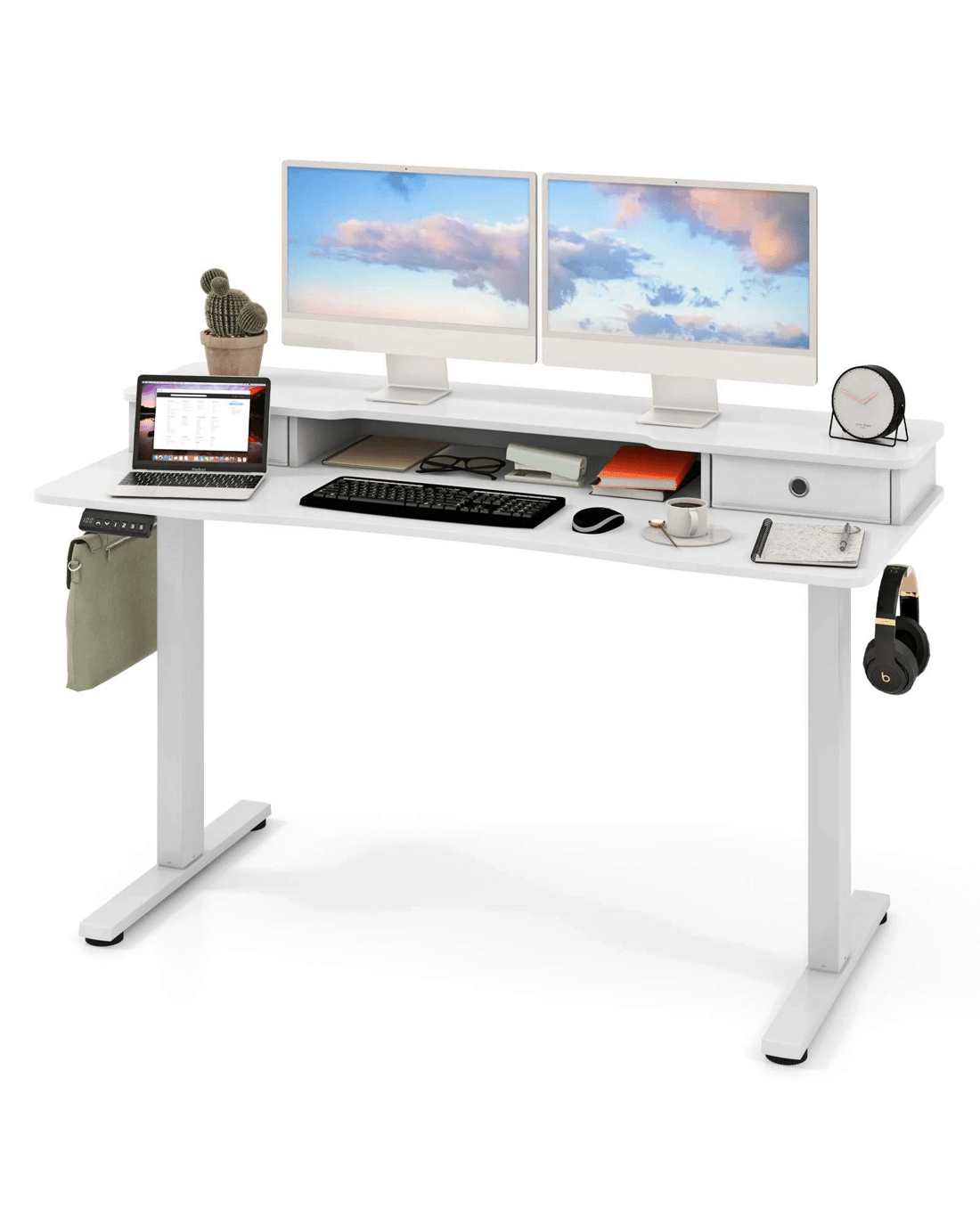 Sold by CostwayCostway 140cm Electric Stand Up Desk w/Power Cord Organizer Computer Desk - White