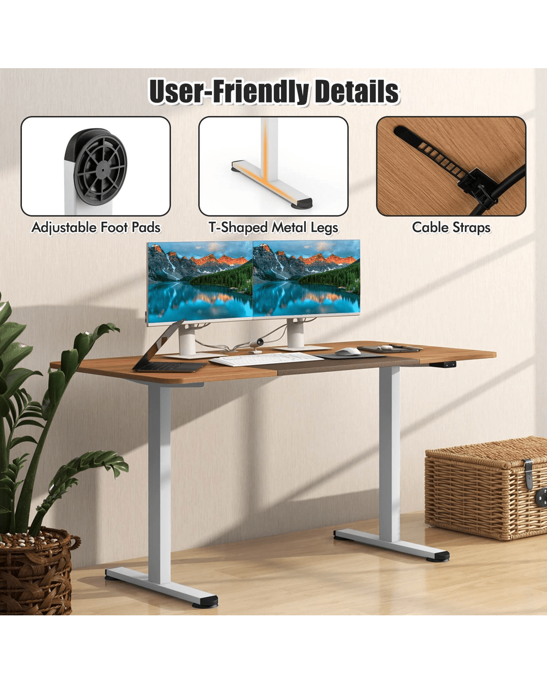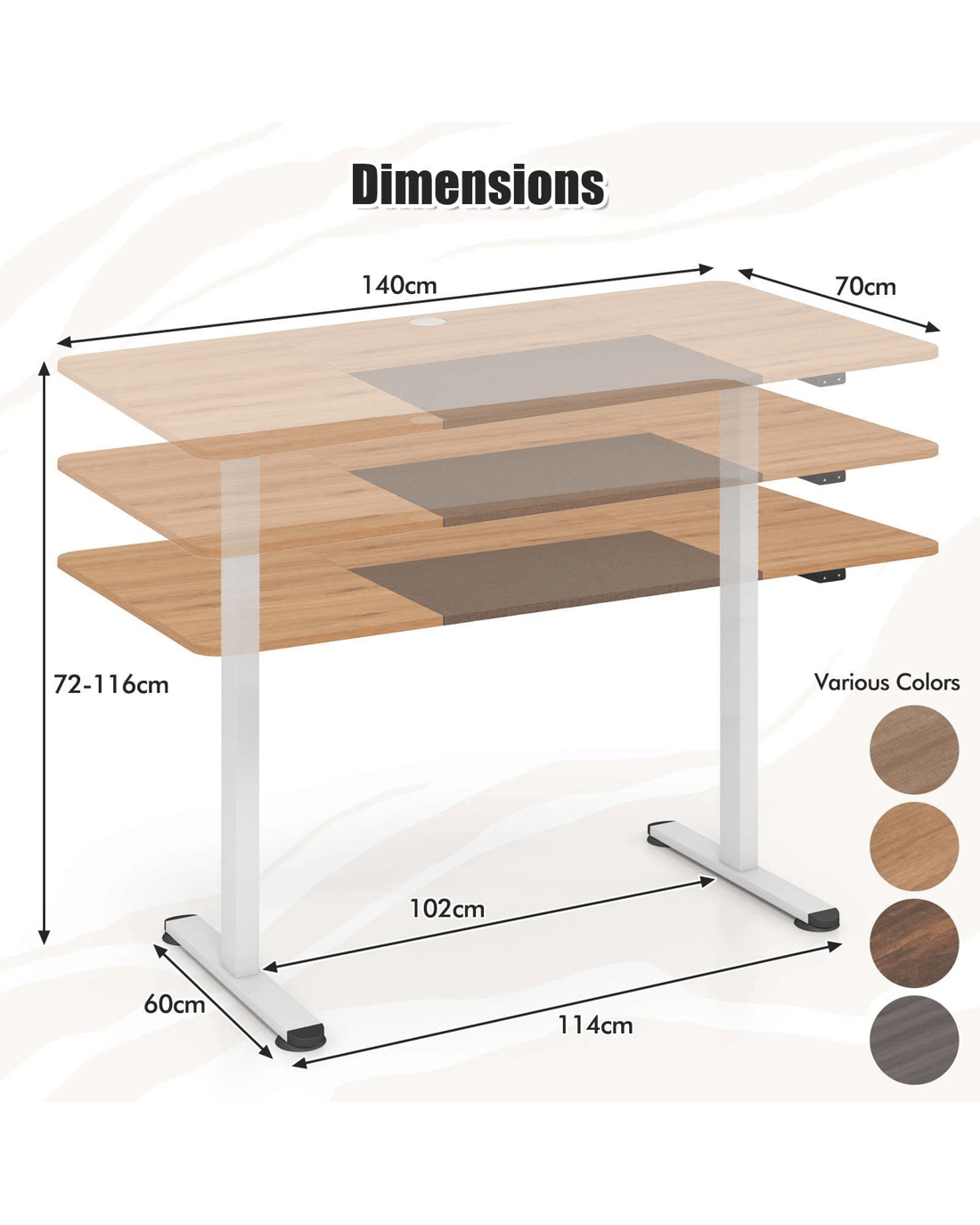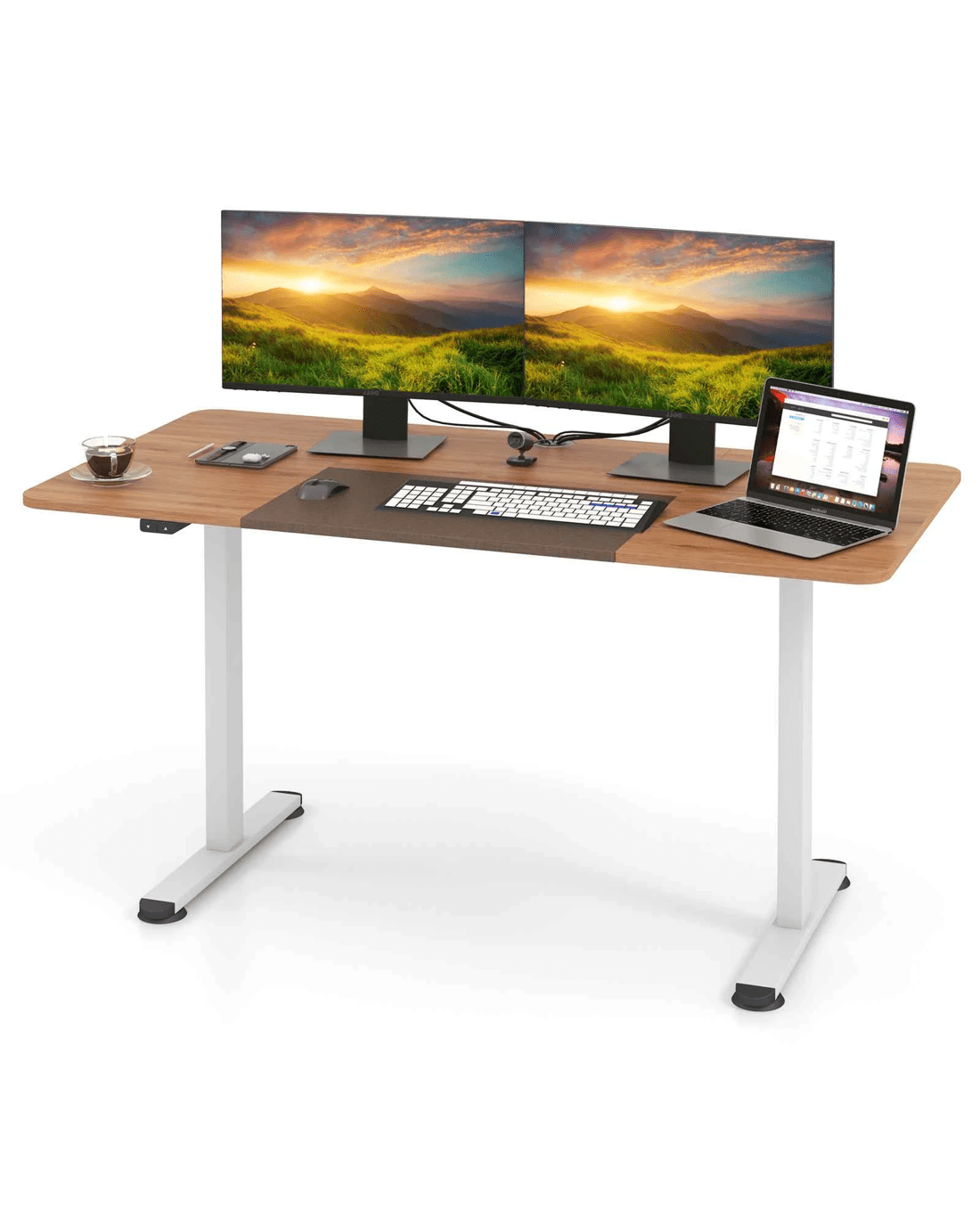 Costway 140cm Electric Standing Desk Motorised Sit Stand Table - Beige
